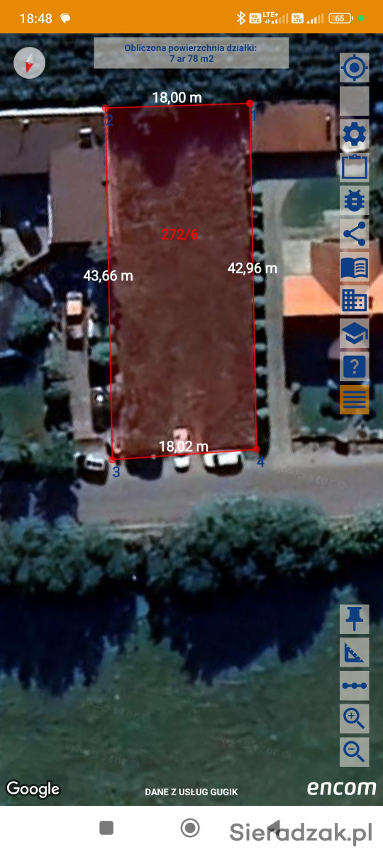 Pole pow. w ewidencji gruntów (ha): 0.078
