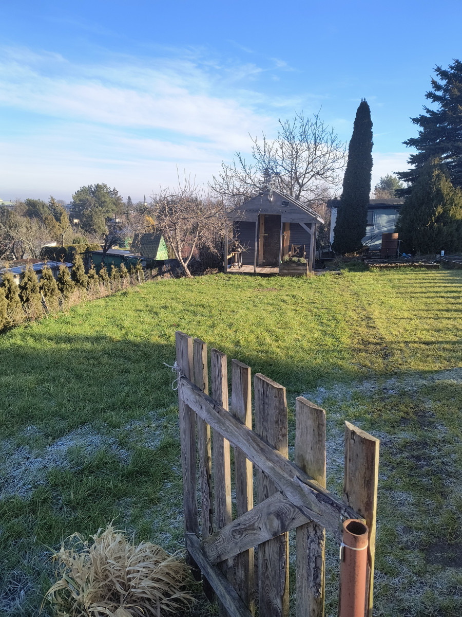 Działka posiada domek z instalacją fotowoltaiczna dzięki czemu jest zaopatrzony w prąd.Roczny Domek wykonany z solidnego drzewa nie to co typowy market. Na działce rozprowadzone jest nawodnienie do podlewania trawy, 4 szkrzynie na warzywa wyłożone siatka na krety. Z nasadzeń trawa pampasowa, maliny,pigwowiec, jabłoń. Więcej szczegółów pod numerem telefonu.