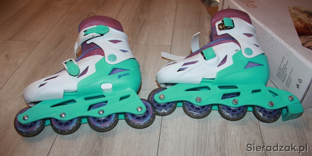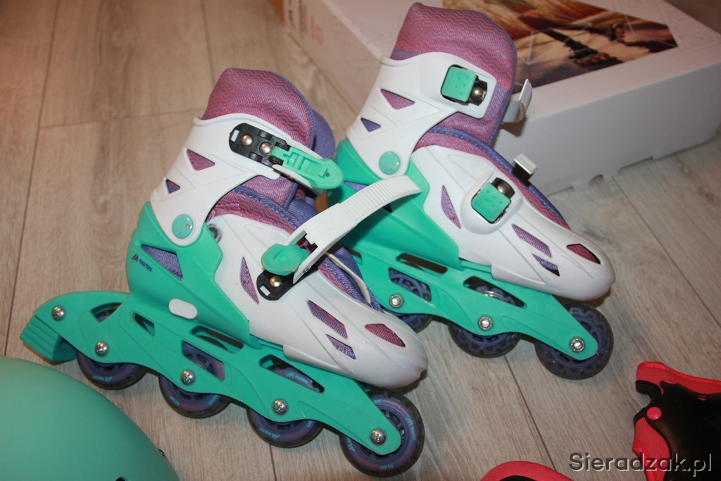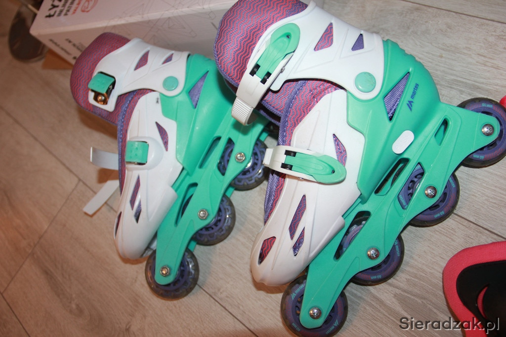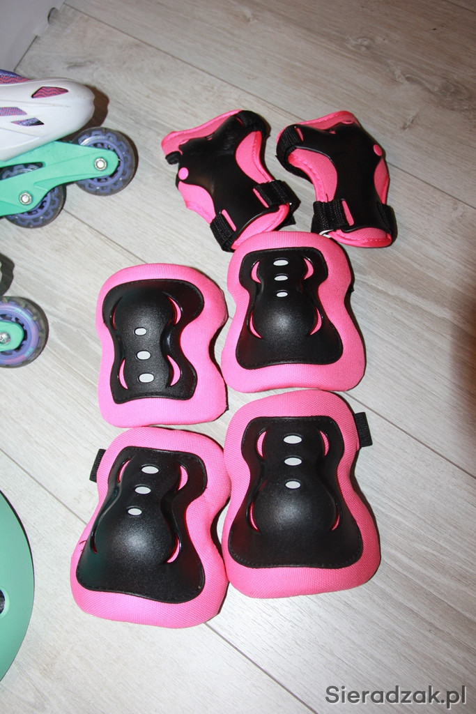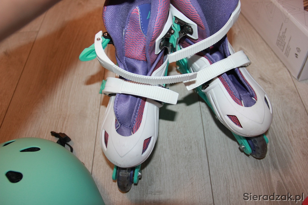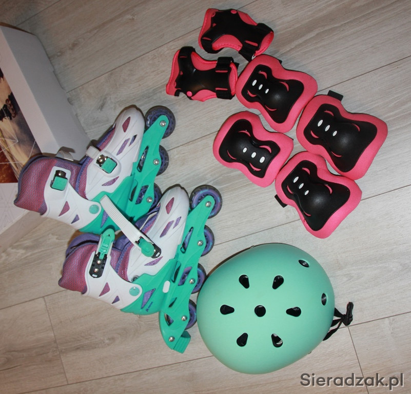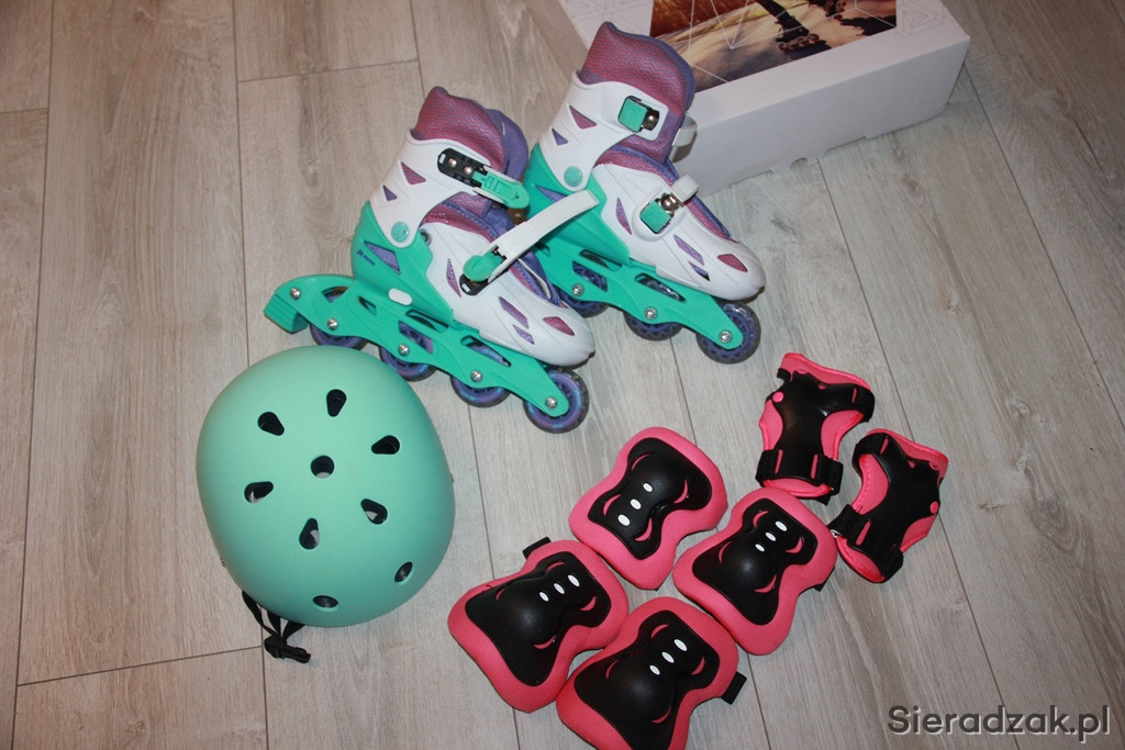 Zestaw łyżworolki w rozmiarze 31-34, plus kask i ochraniacze. Stan bardzo dobry, bardzo miało używane.