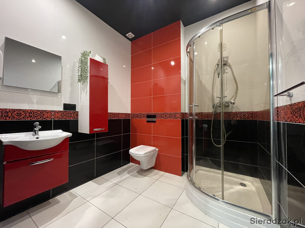 ŁAZIENKA Z WC – duża, elegancka wyposażona dodatkowo w kabinę prysznicową.