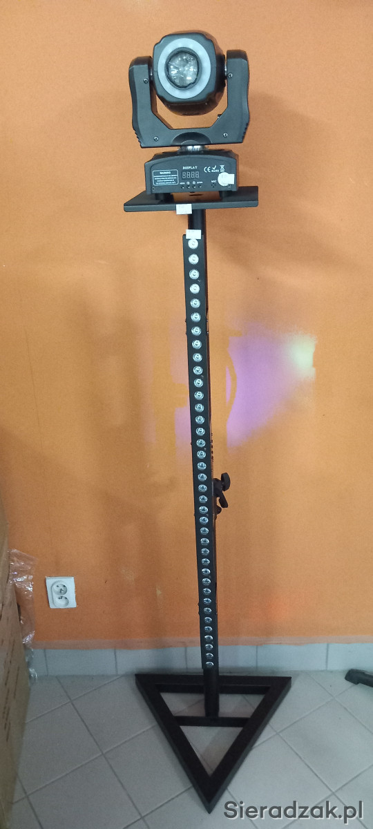 Zestaw oświetleniowy ruchoma głowa 60W Spot Gobo Prism + 12 ring RGB 7 - wzorów 3 - części Listwa LED BAR 38 RGB DMX na Statywie z regulacją wysokości. Oświetlenie doskonale sprawdza się w dekoracji światłem sali weselnych, pomieszczeń hotelowych, restauracyjnych, jako oświetlenie sceniczne w domach i ośrodkach kultury, podczas koncertów, różnego typu występów, gali i prezentacji, a także w klubach tanecznych, dyskotekach oraz jako oświetlenie dla mobilnych DJ-ów, zespołów i firm eventowych itp.