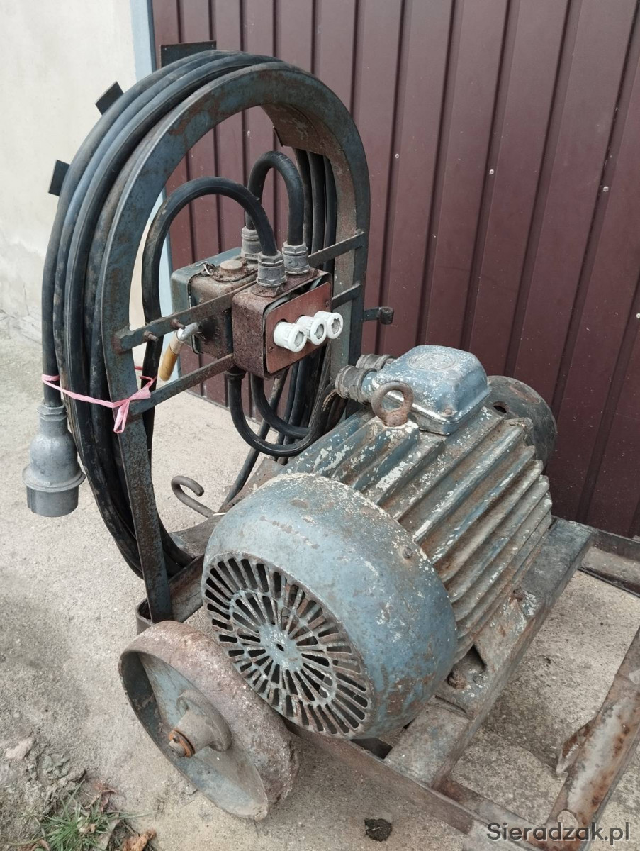 Sprzedam silnik elektryczny trójfazowy na wózku. Polski, 10 kw, trójkąt gniazda włącznik + przewód 20 metrów bieżących.