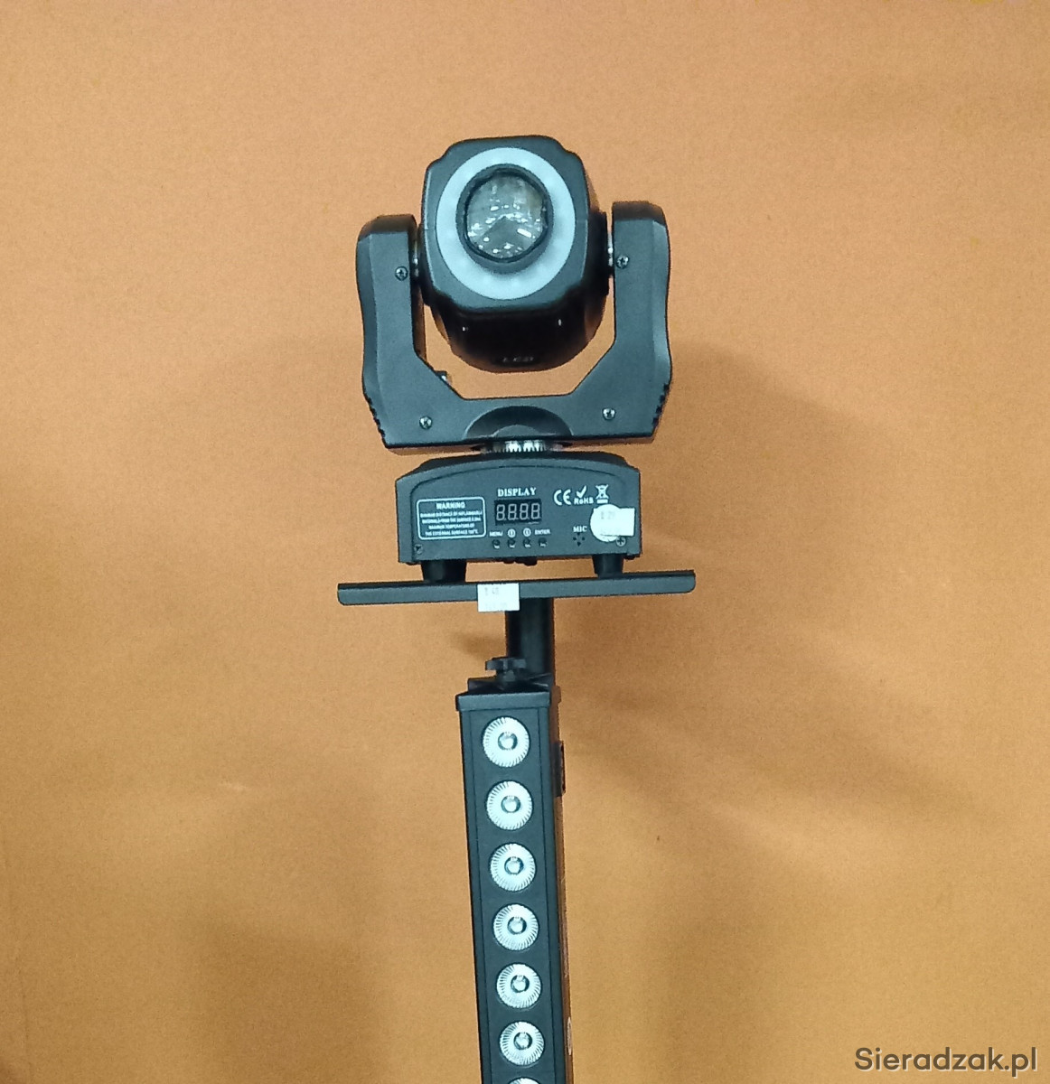 Dostępne też inne Efekty świetlne, reflektory PAR LED, listwy bar, głowy ruchome, stroboskopy, wytwornice dymu i baniek, statywy oświetleniowe.