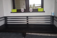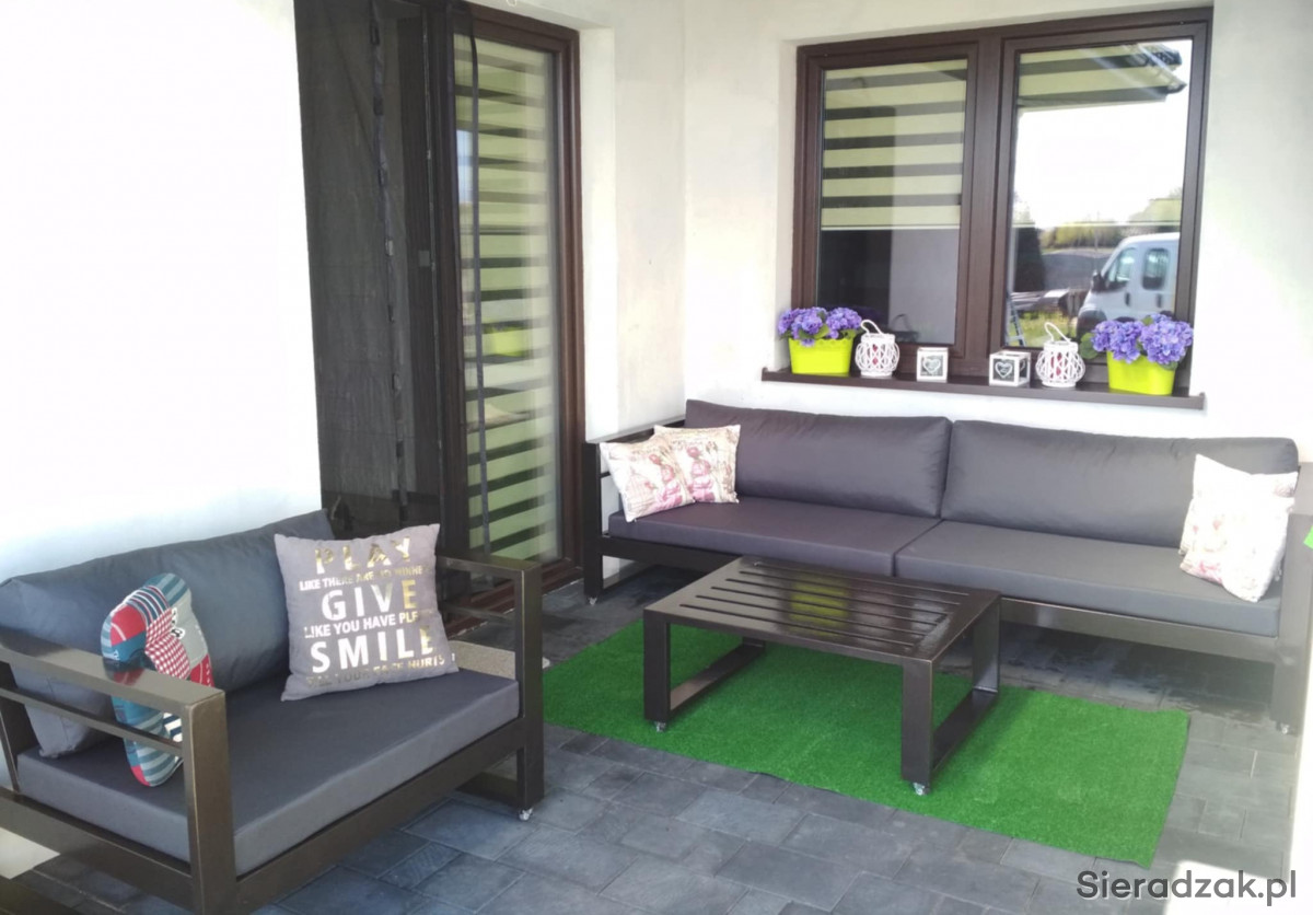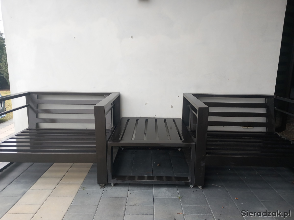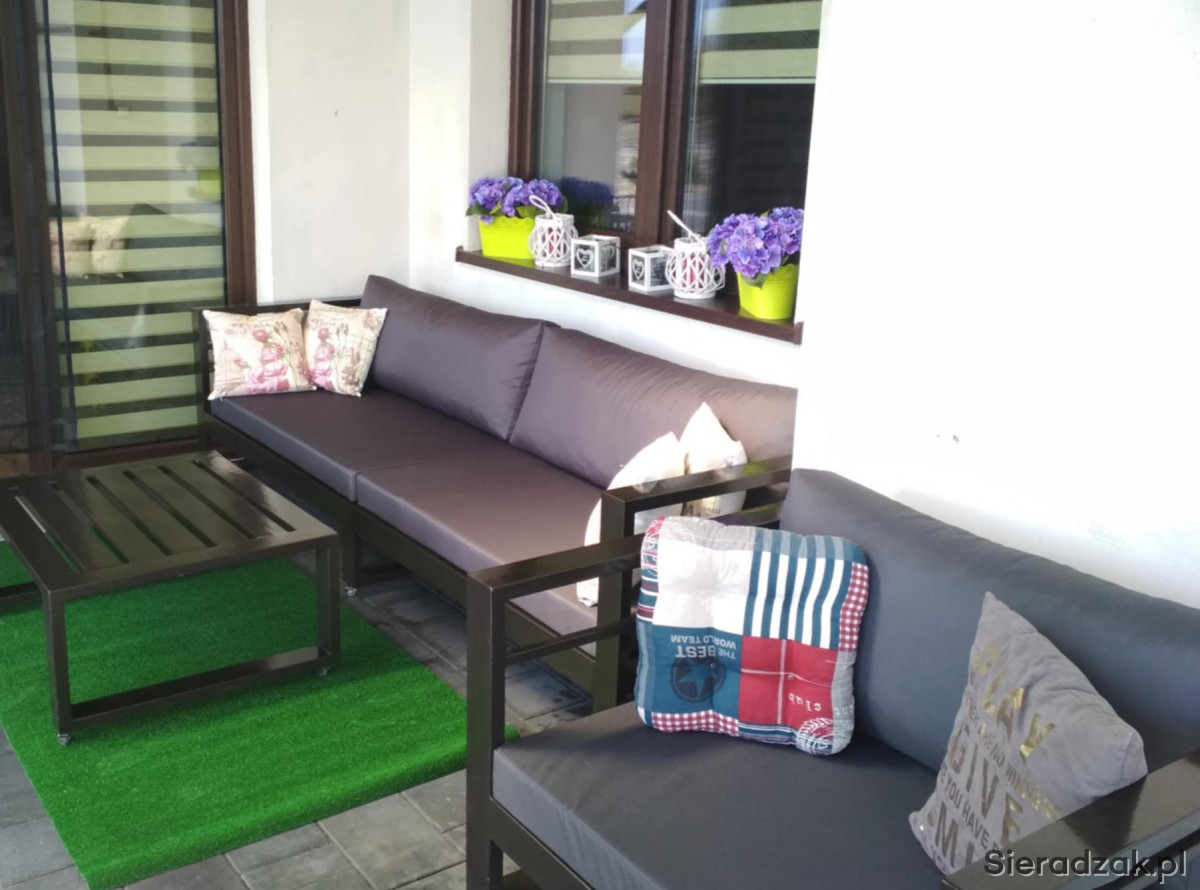 Sprzedam meble ogrodowe wykonane ze stali o grubej średnicy masywne pomalowane dobrym lakierem na rdzę były robione na zamówienie meble ogrodowe sprzedawane są z poduszkami stan bardzo dobre nie zniszczone niepoplamione jak nowe