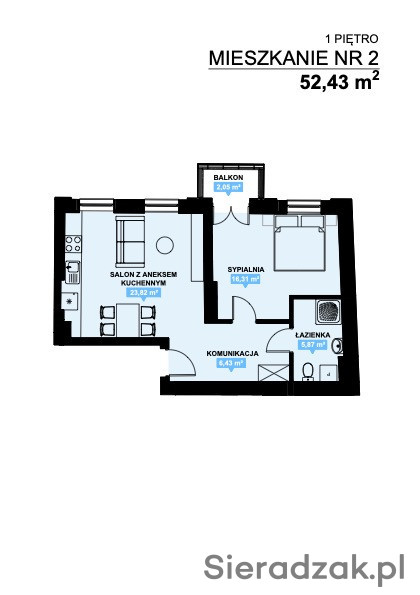 Dwa pokoje, przedpokoj, aneks kuchenny. łazienka