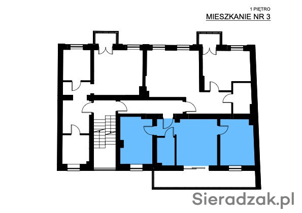 Trzy pokoje, przedpokoj, aneks kuchenny. łazienka,