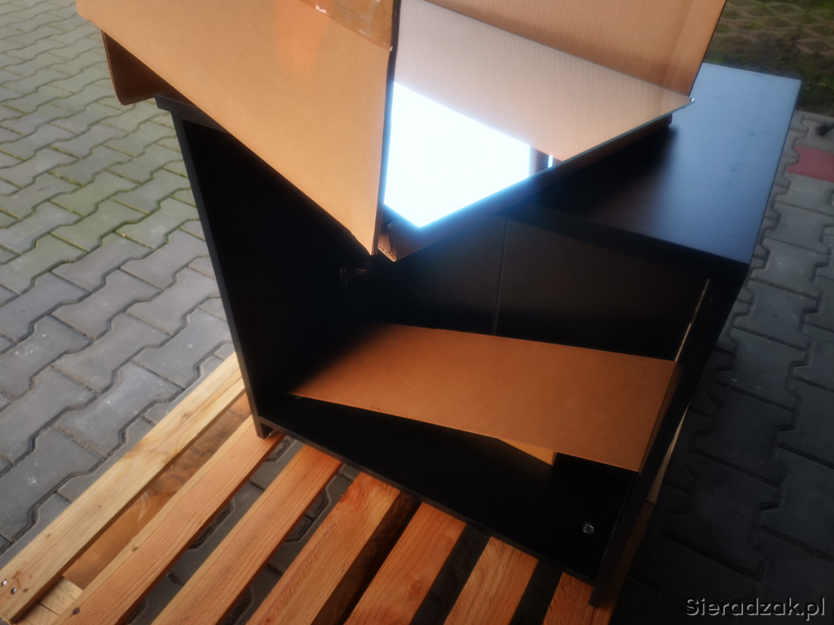 Sprzedam szafkę z lustrem widoczną na zdjęciach. Nie wiem czy to lustro jest do tej szafki, być może miała to być jakaś toaletka. Leżała w garażu długi czas w opakowaniu, teraz dopiero została zmontowana i wyszło takie coś. W każdym razie lustro raczej jest nowe, szafka do dopieszczenia.