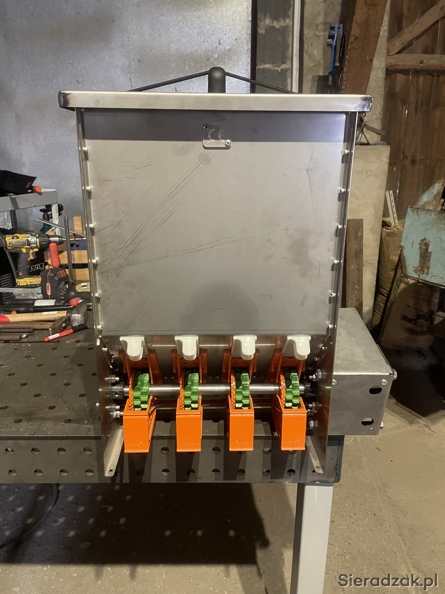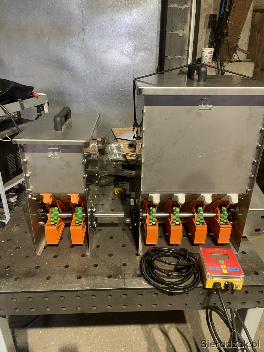 Witam, oferuję podsiewacze do nawozów i mikrogranulatów wykonane w całości ze stali nierdzewnej kwasoodpornej oraz oryginalnych podzespołów marki Amazone. Dzięki dzielonym aparatom wysiewającym, urządzenie pozwala na wysiew zarówno mikrogranulatów w niskich dawkach ( kilka kg na ha ) jak i nawozów oraz poplonów w większych dawkach ( kilkaset kg na ha ). W ofercie posiadam zbiorniki o różnej wielkości i ilości sekcji wysiewających. Napęd elektryczny ze sterownikiem PWM lub sterownikiem GPS, który automatycznie dopasowuje wysiew do aktualnej prędkości. Istnieje również możliwość wyprowadzenia wałka pod napęd mechaniczny z maszyny. Użądzenie łatwe w montażu oraz przekładaniu między różnymi maszynami. W skład zestawu może wchodzić jeden lub dwa zbiorniki zasilane z jednego sterownika, tak aby jak najlepiej dopasować urządzenie do potrzeb klienta. Cena uzależniona od składu zestawu. Więcej informacji pod numerem telefonu 695 237 664.