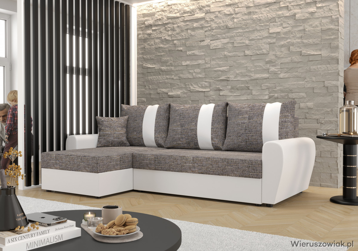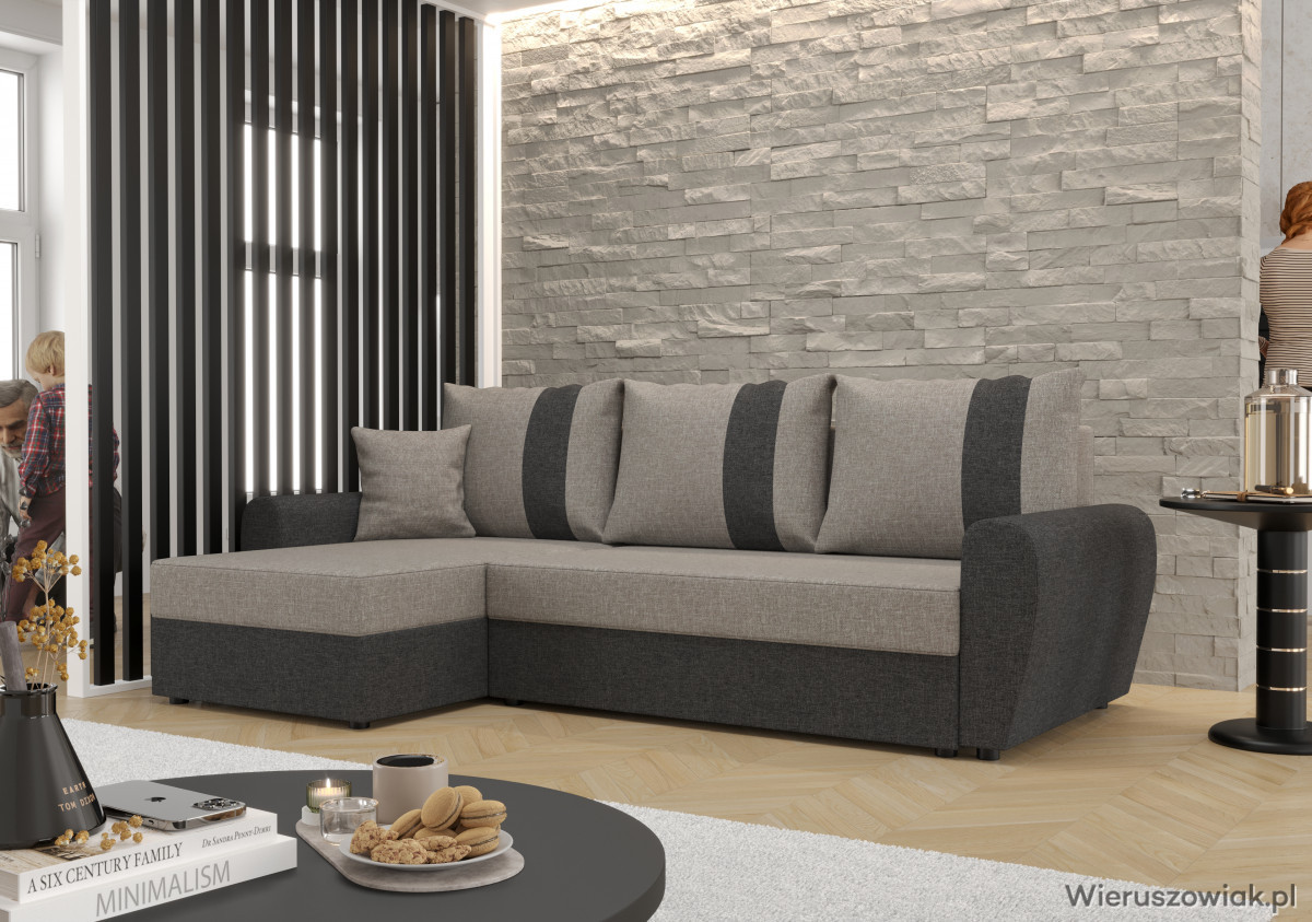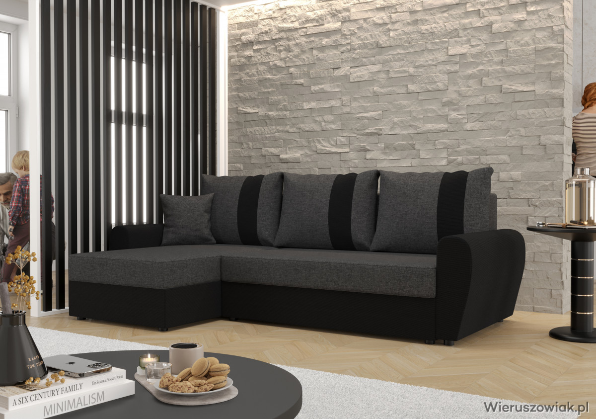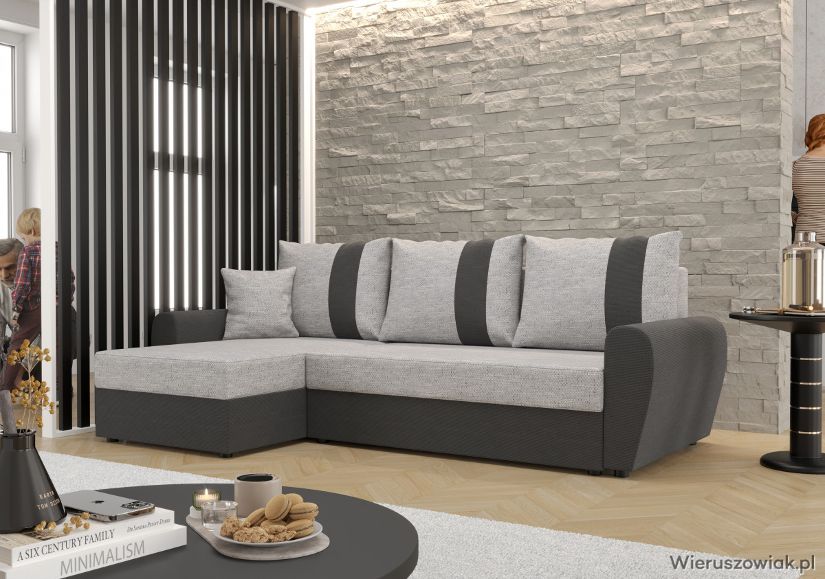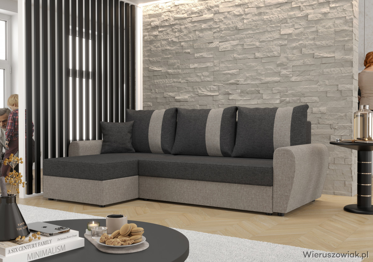 Narożnik Davos w kształcie litery L to idealne połączenie elegancji i funkcjonalności, które doskonale sprawdzi się w każdym wnętrzu. Wyposażony w pojemnik na pościel, zapewnia dodatkowe miejsce do przechowywania, co jest niezwykle przydatne w mniejszych przestrzeniach.