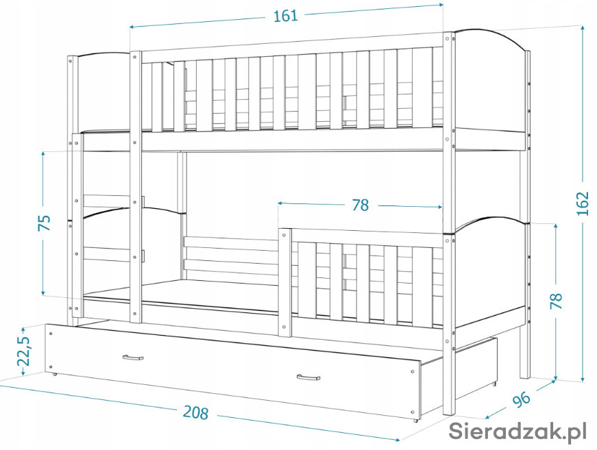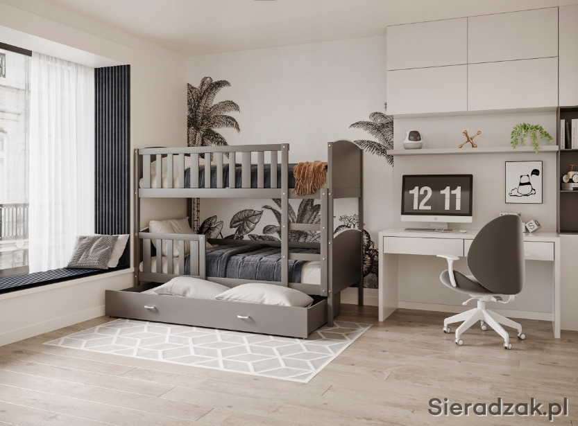 TAMI to popularny model również przez wzgląd na swoją solidną i bezpieczną konstrukcję. Górne łóżko ma wysoką przedłużoną barierkę, która chroni przed upadkiem podczas snu, a mocna drabinka zapewnia swobodne wchodzenie i schodzenie. Dodatkowym atutem jest możliwość rozłożenia łóżka na dwa pojedyncze, jeśli zajdzie taka potrzeba.