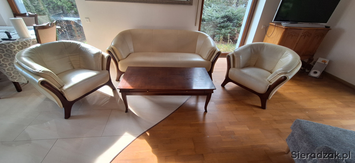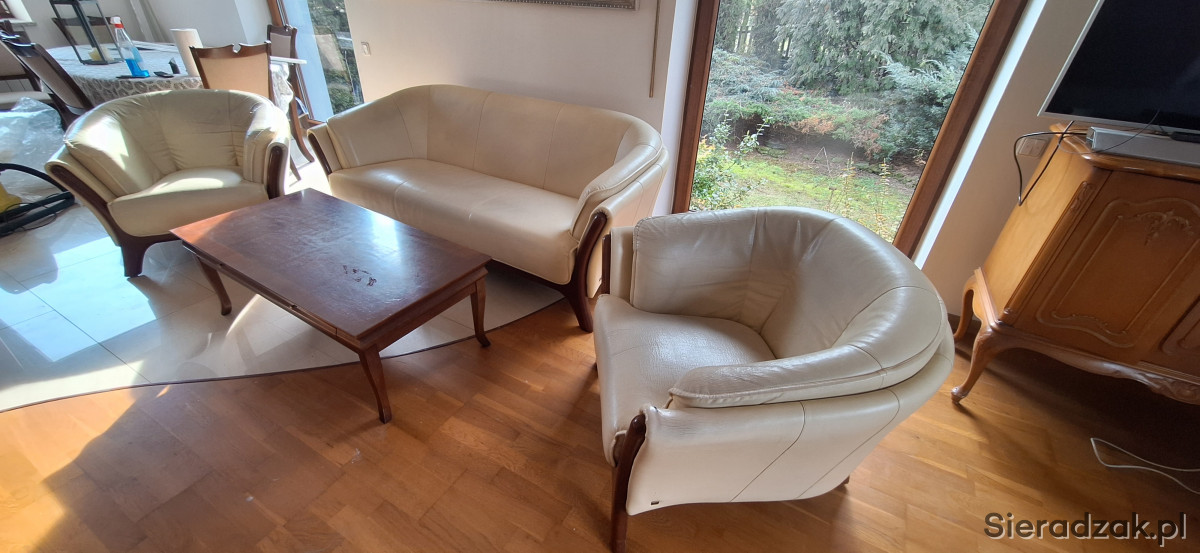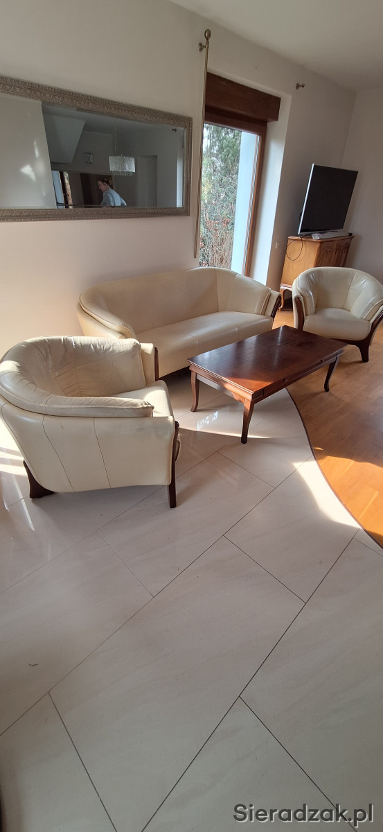 Do sprzedania komplet mebli wypoczynkowych. Sofa wymiary 2mx1mx80 cm plus 2 fotele oraz ława. Więcej informacji udzielę telefonicznie
