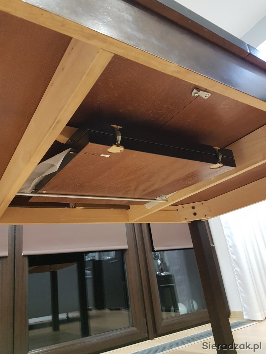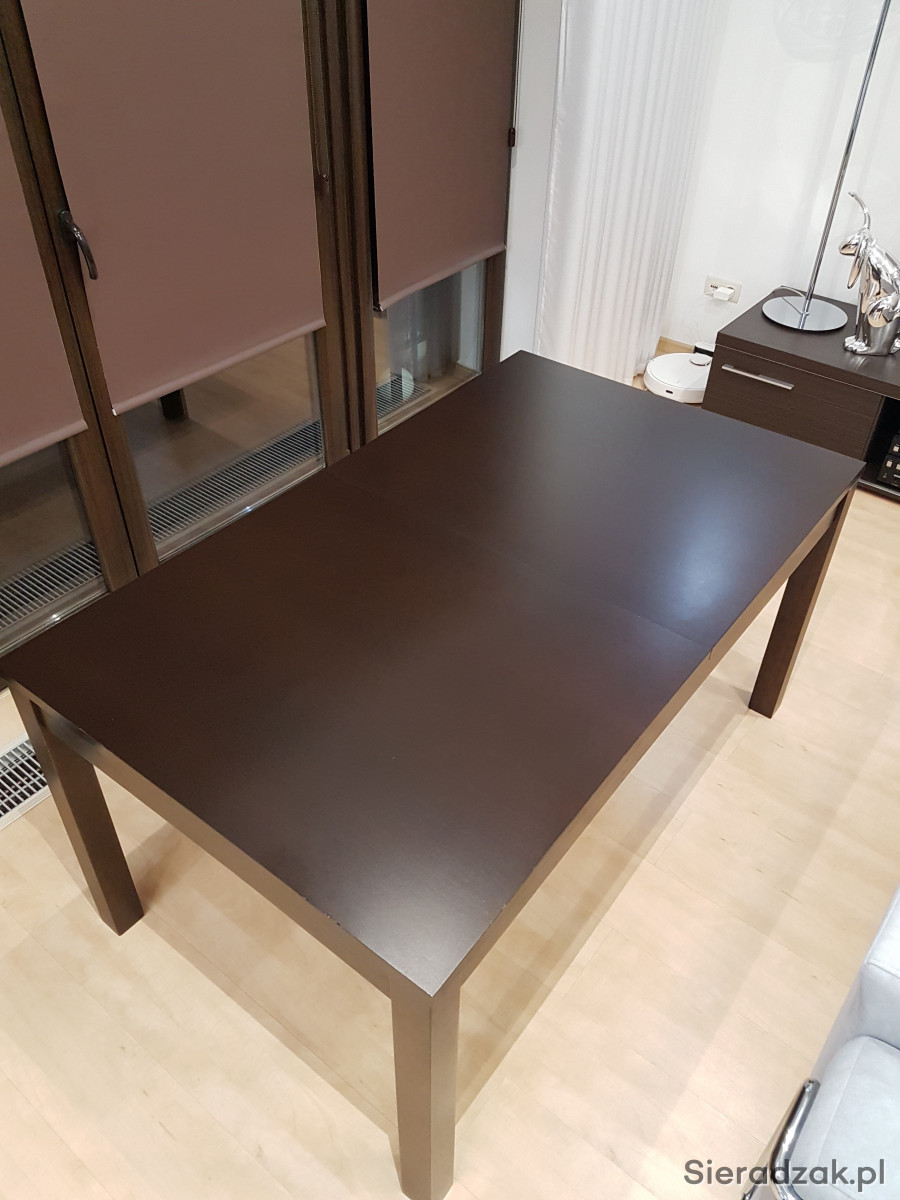 Stół do salonu lub kuchni 150 × 90 cm a po rozłożeniu długość ma 195 cm.