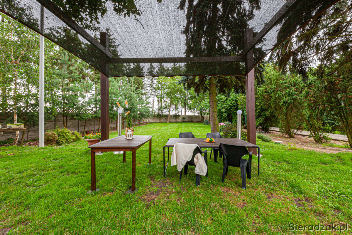 Posiadłość otoczona jest przepięknym, dużym ogrodem o powierzchni około 4000 m². W ogrodzie rosną dorodne świerki i zadbane krzewy, tworząc prawdziwie bajkową atmosferę. Posadzono również drzewa owocowe. Rozprowadzono automatyczne podlewanie.