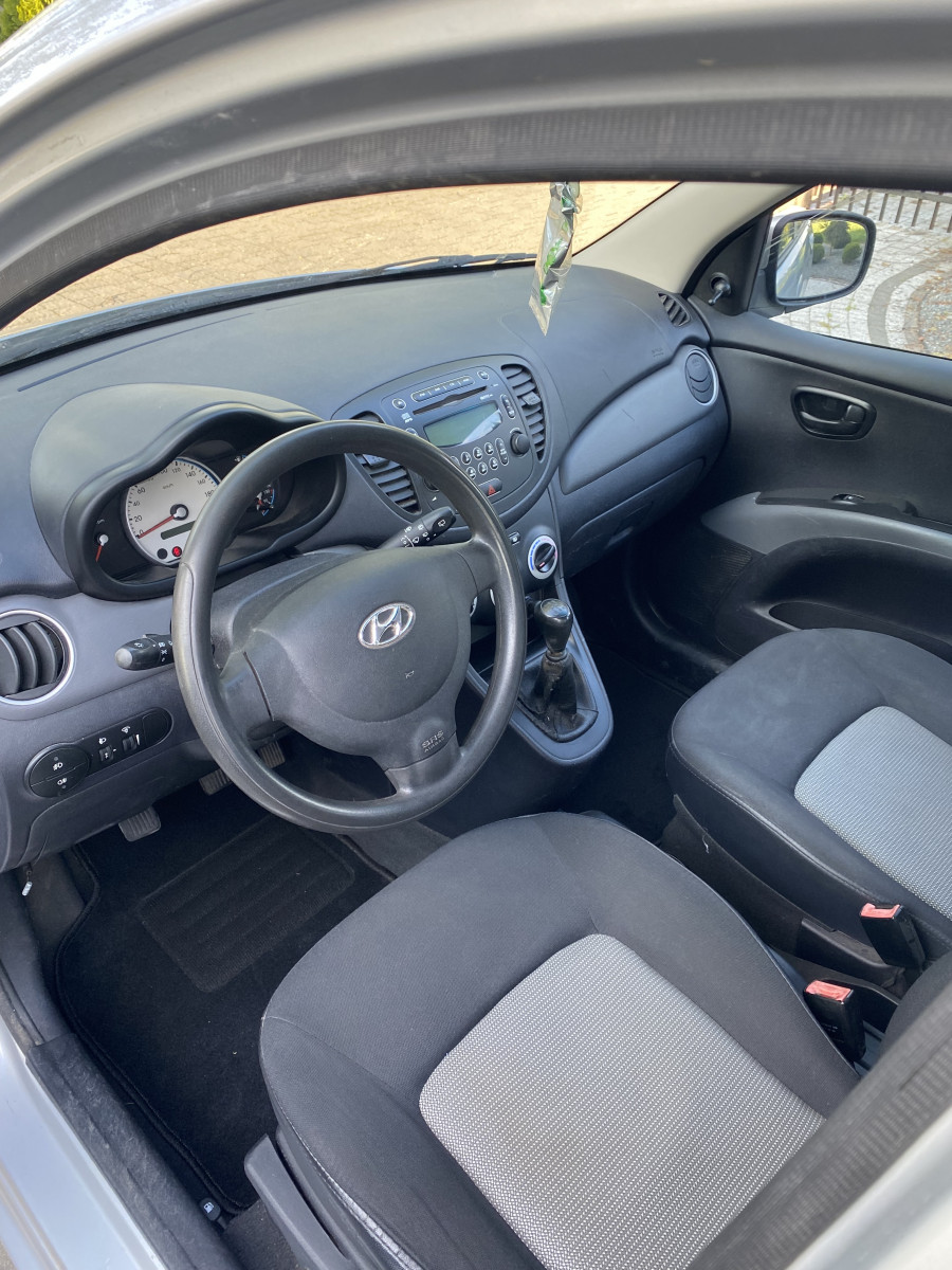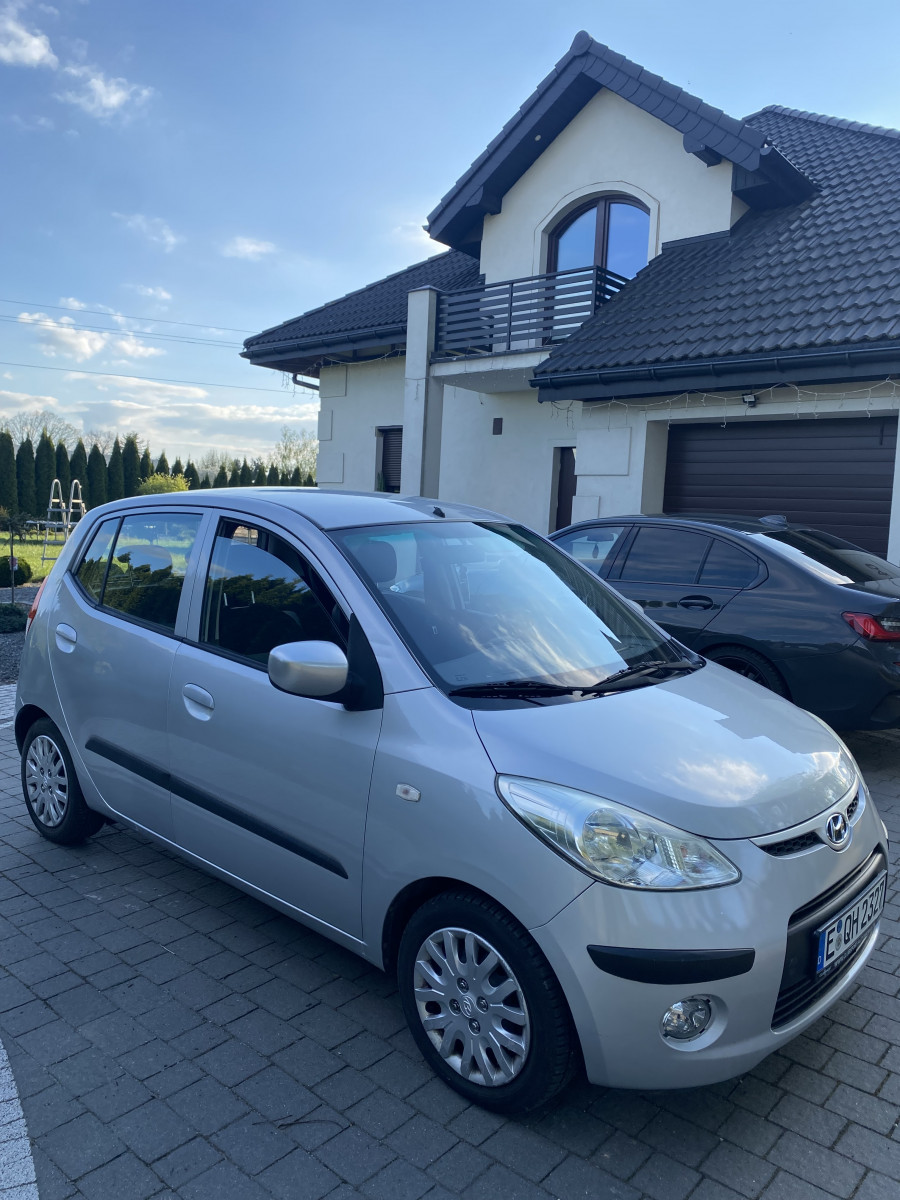 Sprzedam ładnego Hyundai i10. 1.2 benzynka. Oryginalny b ładny lakier srebrny metalic. Sprowadzony z Niemiec.Zarejestrowany w Polsce. Ubezpieczenie OC i badanie techniczne ważne 1 rok. Klimatyzacja - sprawna. el.szyby, wspomaganie kierownicy. centralny zamek 2 kluczyki z pilotem. .Regulacja fotela kierowcy, halogeny. Bardzo dynamiczny a zarazem oszczędny w spalaniu benzyny silnik 1.2 . Rozrząd na łańcuchu. B trwały i niezawodny.