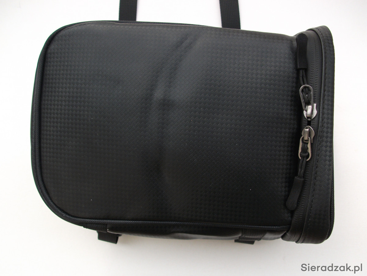 Ta torba wykonana jest z bryzgoszczelnego materiału, kryty zamek suwakowy zapewnia suchość i ochronę zawartości nawet podczas ulewnego deszczu.
