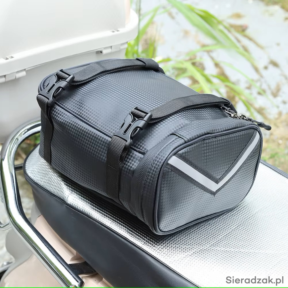 Przedmiotem oferty jest torba z silnym odblaskiem na bagażnik motocyklowy, rowerowy, na skuter lub rower elektryczny.
