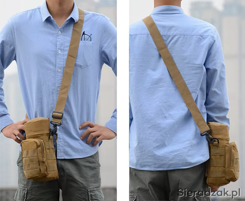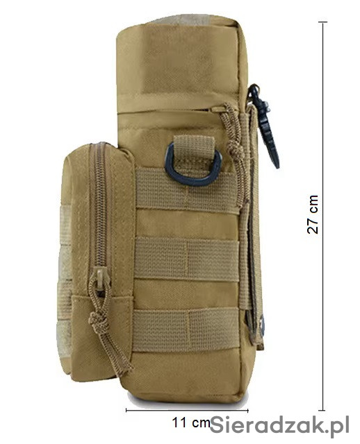 Taktyczna wielofunkcyjna torba posiada szeroki otwór, zmieści termos lub butelki o średnicy do 11 cm i wysokości do 26 cm.