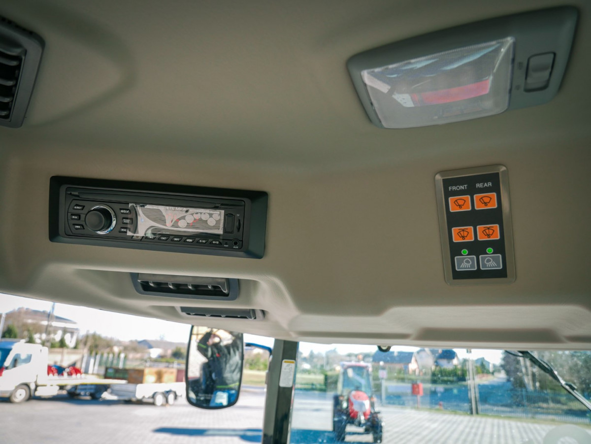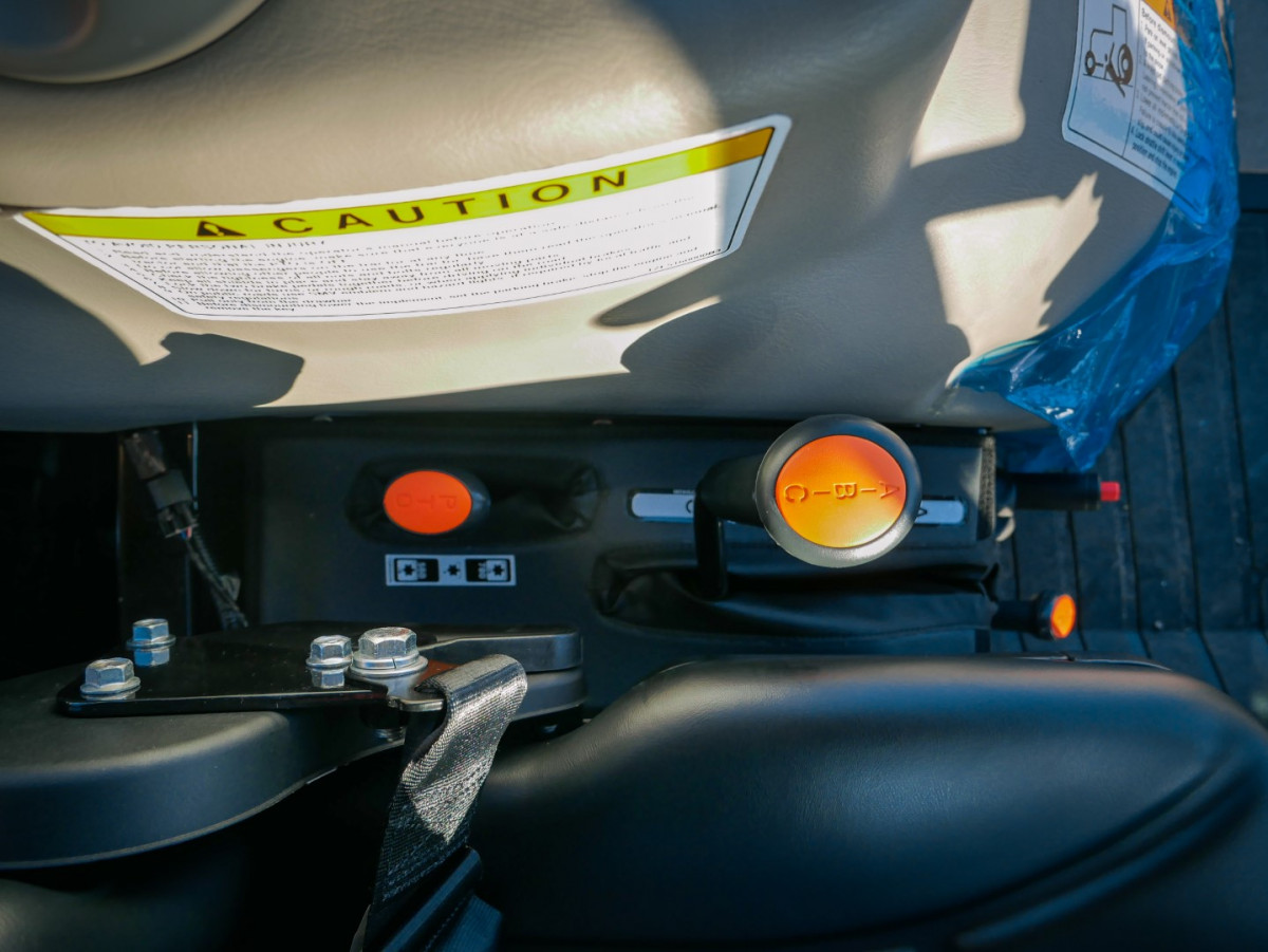 - Komfortowy mechaniczny fotel operatora z pasami bezpieczeństwa