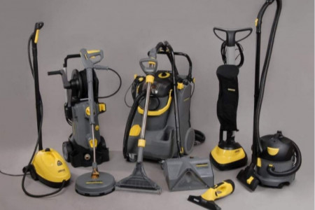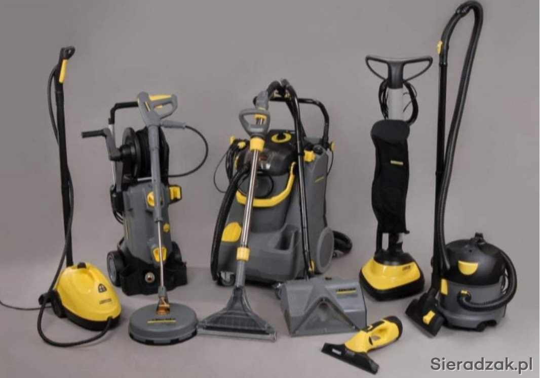 Posługuje się sprzętem renomowanych firm Karcher oraz Numatic.