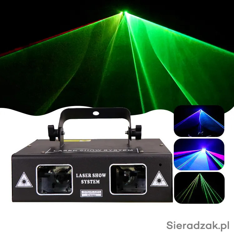 Laser z czerwoną, zieloną i niebieską diodą laserową RGB oraz 51 - wbudowanych efektownych wzorów sterowanych automatyczne lub dźwiękiem. Sterowanie muzyką przez wbudowany mikrofon, regulowana czułość. Wytwarza różne wzory geometryczne złożone z punktów i linii oraz wiele dodatkowych efektów. Dzięki temu posiada duże możliwości pracy w każdych warunkach. Każdy użytkownik będzie z pewnością zadowolony mając możliwość użycia wszystkich efektów na każdej imprezie. Doskonale sprawdza się jako oświetlenie sceniczne w domach i ośrodkach kultury, podczas koncertów, różnego typu występów, gali i prezentacji, a także w klubach tanecznych, dyskotekach oraz jako oświetlenie dla mobilnych DJ-ów, zespołów i firm eventowych itp.