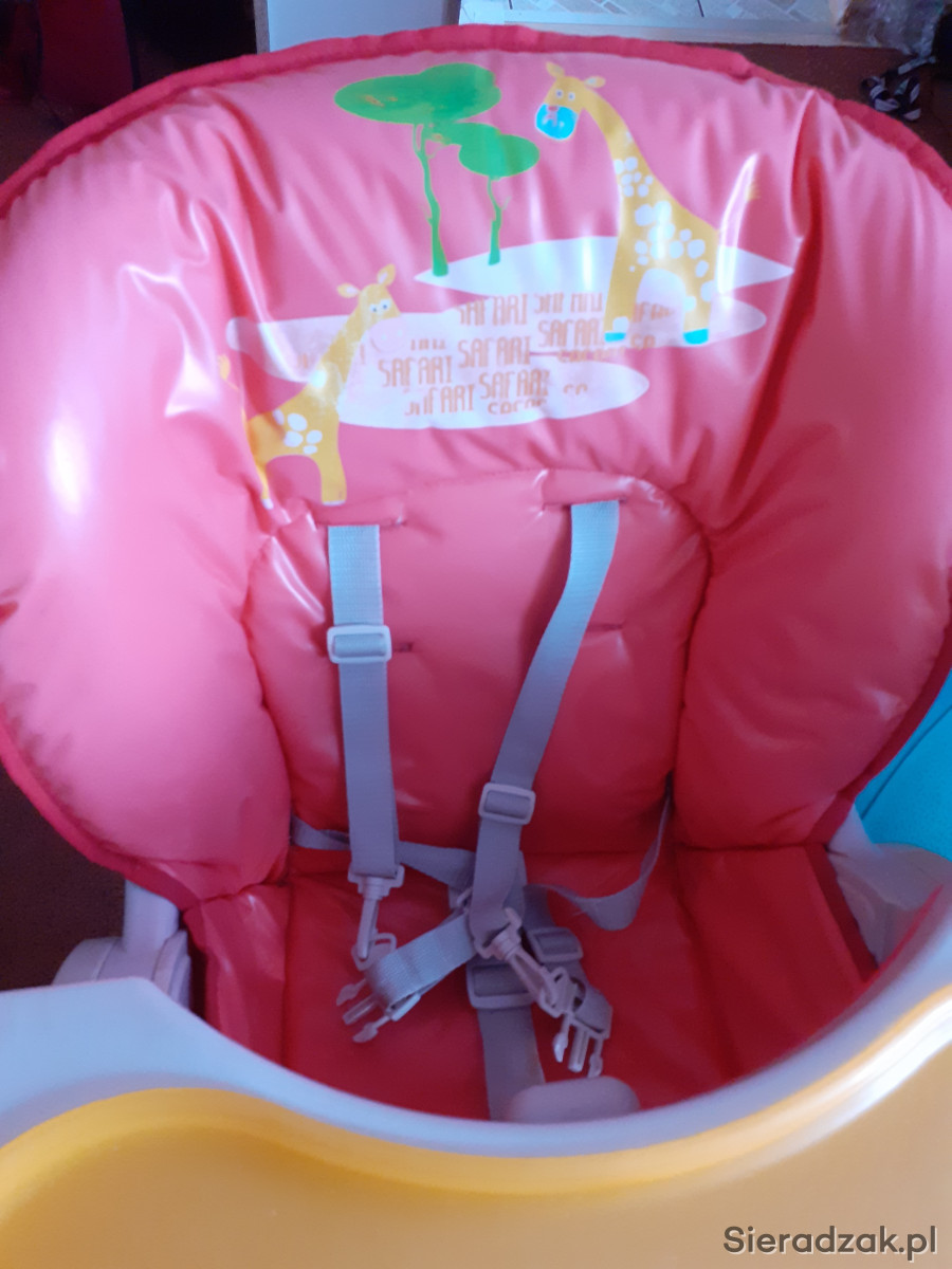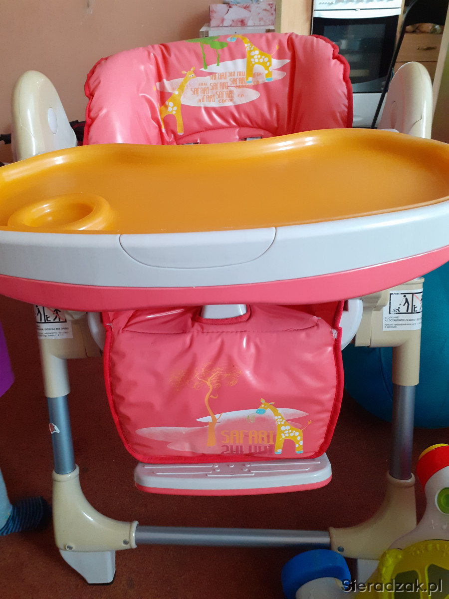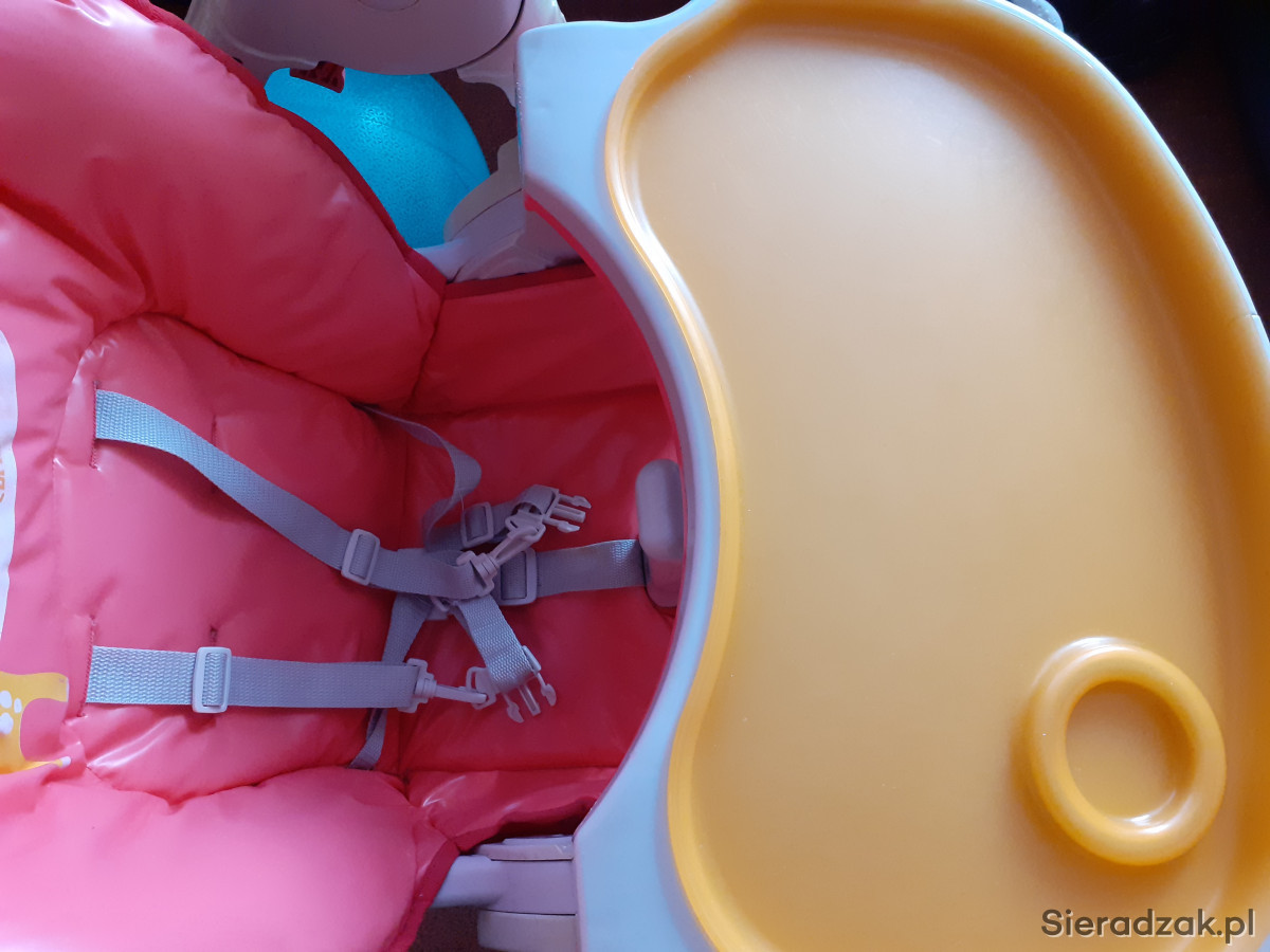 Krzesło do karmienia firmy Coneco. Regulowana wysokość, zdejmowana taca, możliwość całkowitego wypięcia jak i wpięcia podstawy z tacą. Szelki regulowane, można wypiąć celem np wyprania. Materiał całkowicie można zdjąć celem odświeżenia. W podstawie kółka do przemieszczania z blokadą.