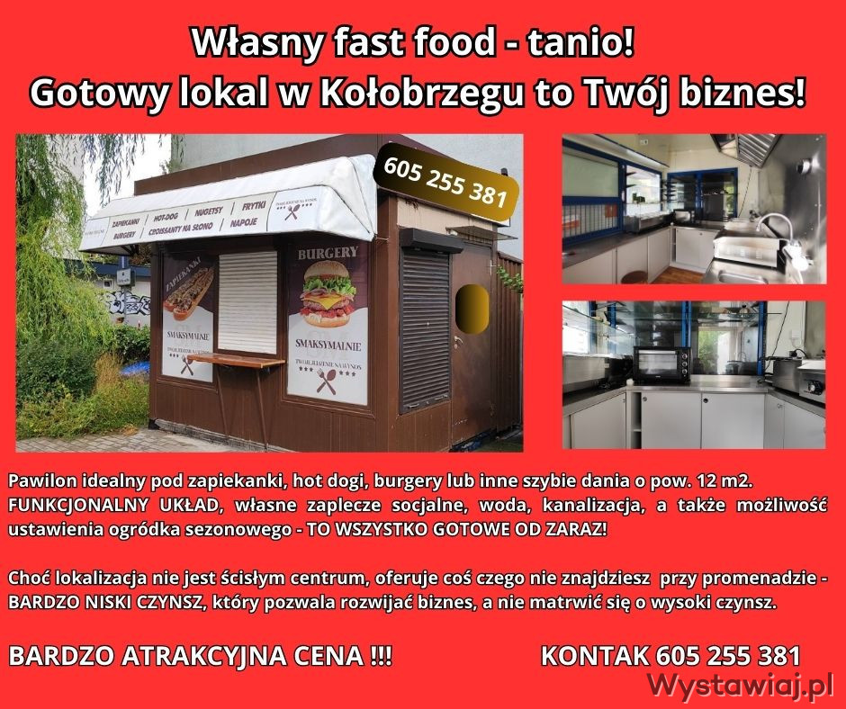 Sprzedam pawilon gastronomiczny w Kołobrzegu. Powierzchnia pawilonu 12 m2 w pełni wyposażony.
