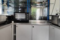 Znajdują się w nim meble wykonane na zamówienie oraz część robocza z blachy kwasoodpornej