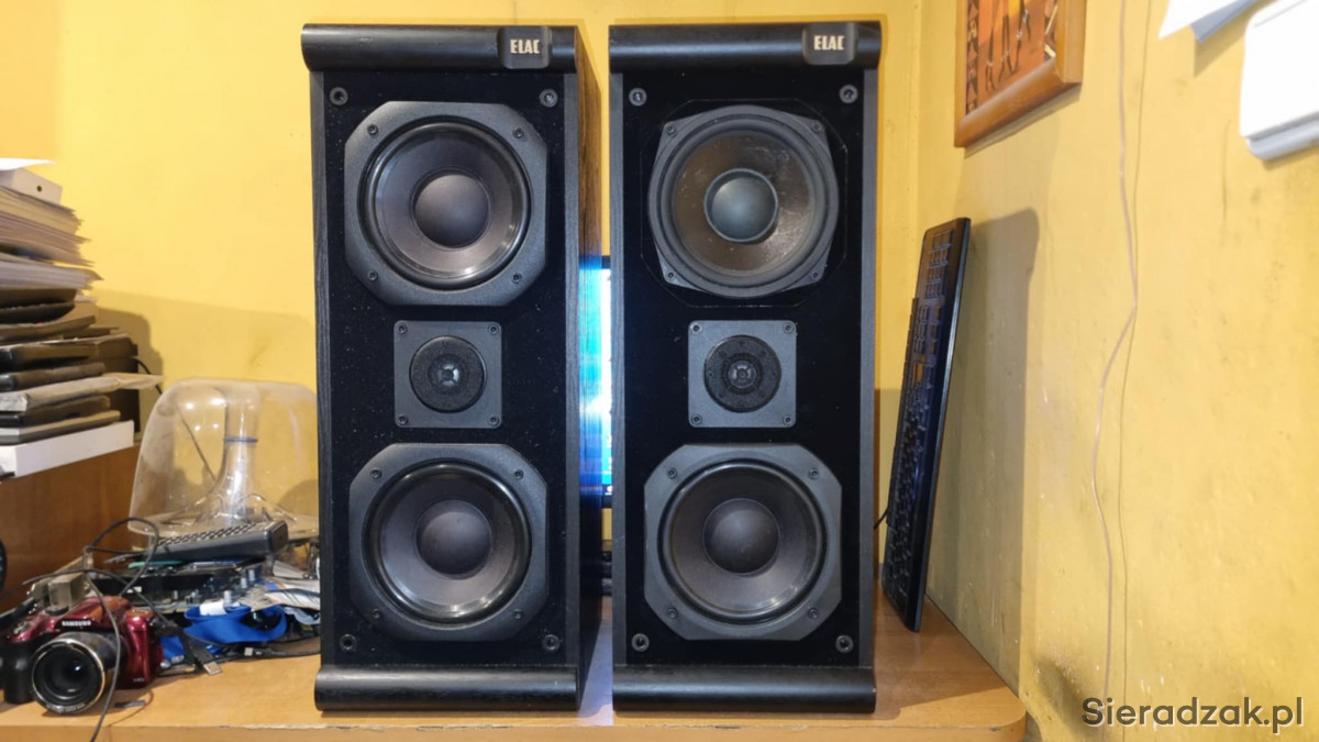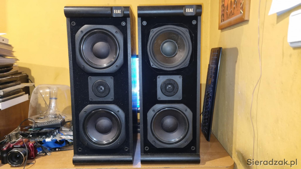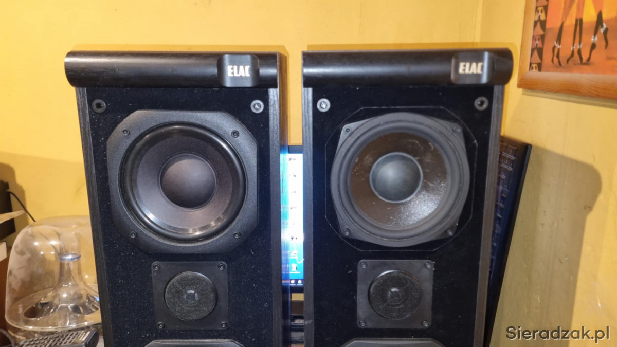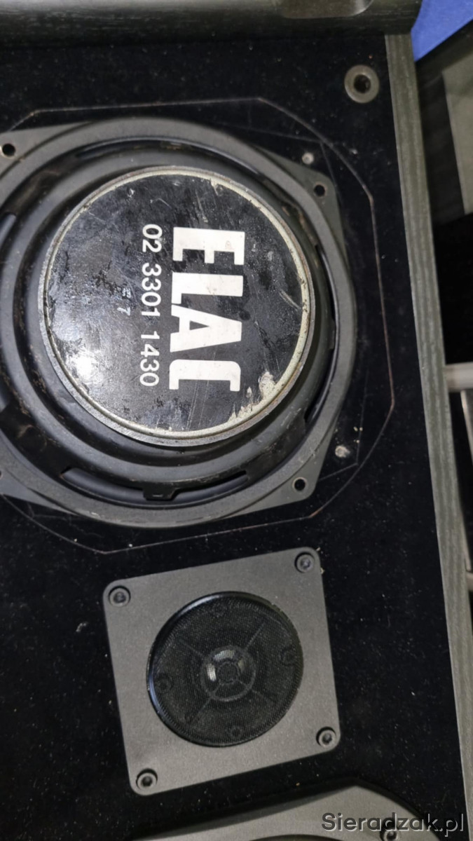 Kolumny sprawne w jednej był wymieniony jeden głośnik na oryginalny Elac ale brak plastikowej obwódki. Kolumny grają bardzo dobrze. Polecam.