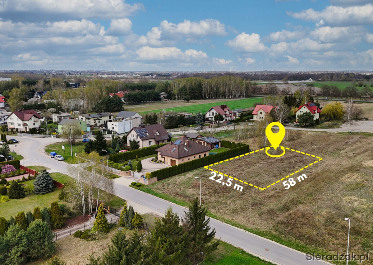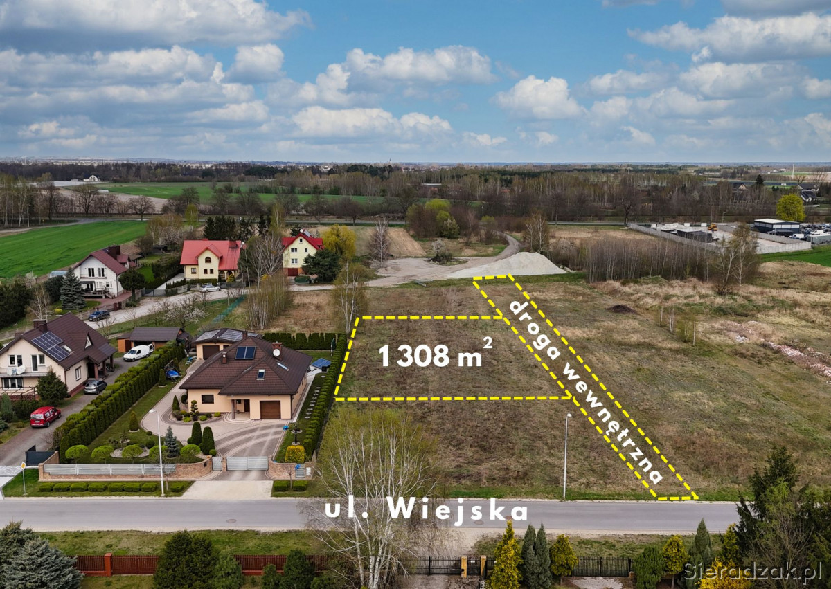 DO SPRZEDANIA DZIAŁKA Z MOŻLIWOŚCIĄ ZABUDOWY O POW. 1 308 M.KW. POŁOŻONA PRZY UL. WIEJSKIEJ W SIERADZU.