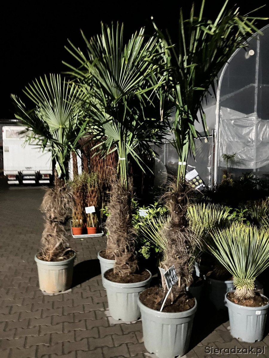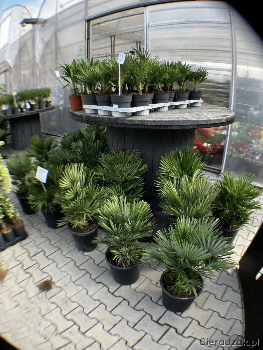 Bogaty wybór roślin egzotycznyh palm w rżónej wielkości.
