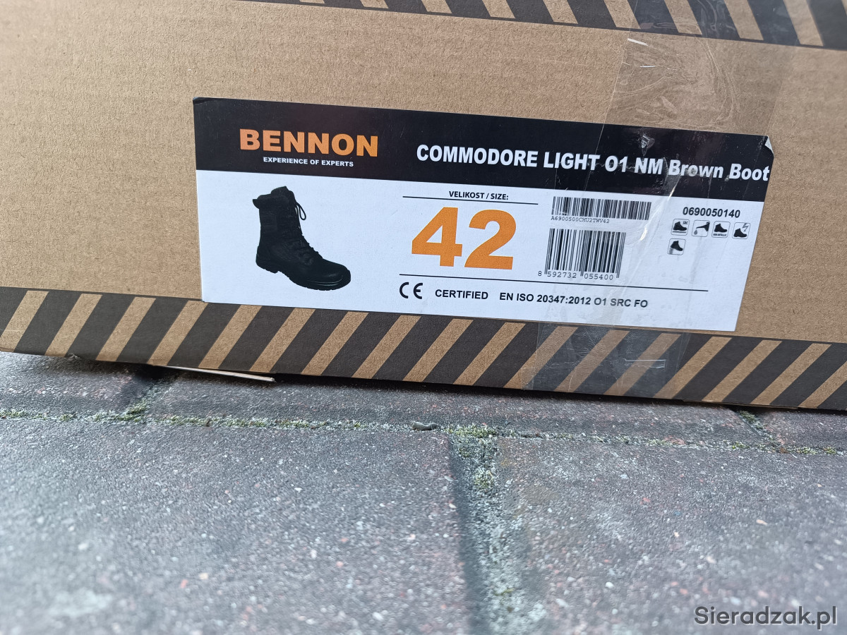 Mam do sprzedania nowe skórzane buty taktyczne BENNON Commodore Light w kolorze brązowym, rozmiar 42, długość wkładki 27 cm.