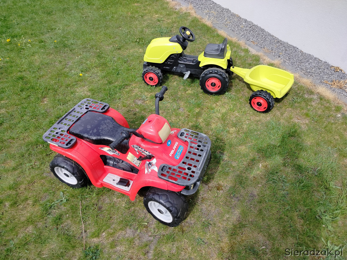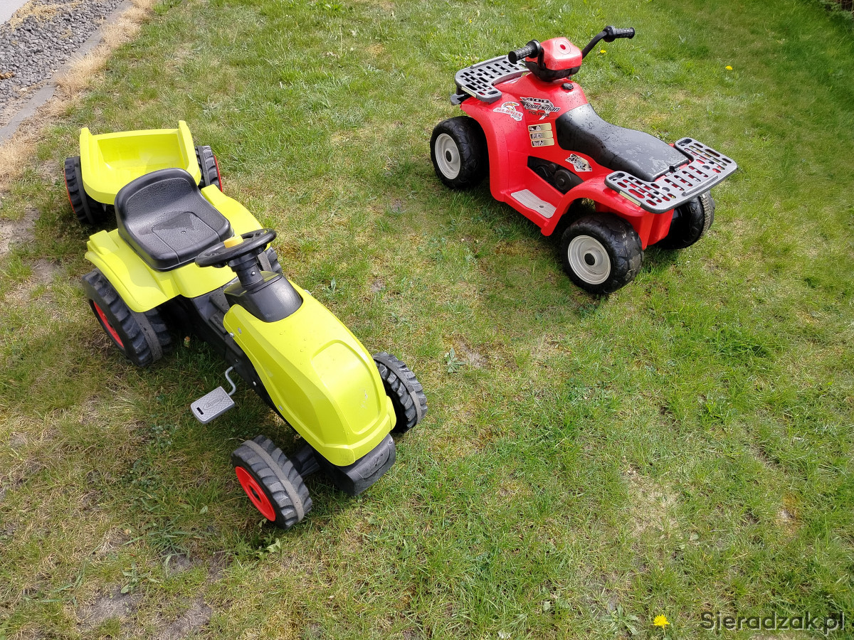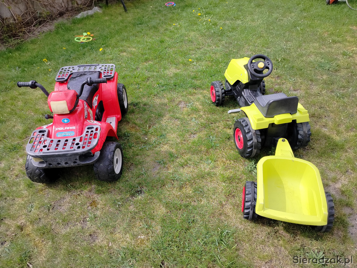 Witam.Mam do sprzedania traktorek na pedały wraz z przyczepką firmy Smoby oraz quad na akumulator 6v firmy Peg perego,Zabawki sprawne lecz w quadzie akumulator już do wymiany.Sprzedaję gdyż syn już się nimi nie bawi.
