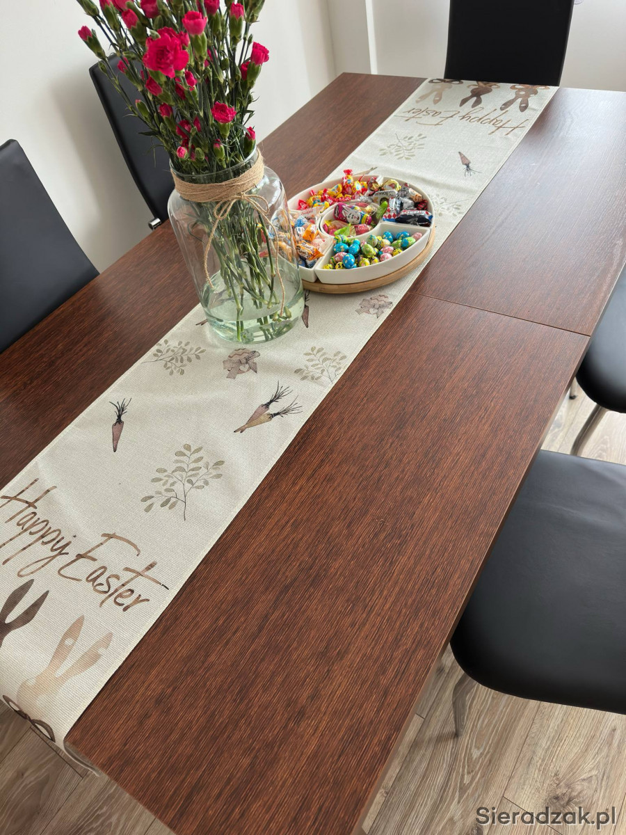 Stół rozkładany 160x90 cm, plus płyta przedłużająca 50 cm.
