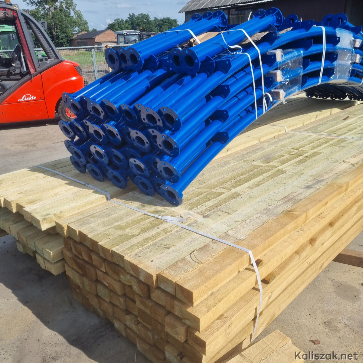 Cena za hale 12 x 25m. Gotowy komplet do montazu: 11szt przęseł malowanych proszkowo, zestaw łat drewnianych 7x10, blacha T7 w dowolnym kolorze oraz zestaw śrub i wkrętów.