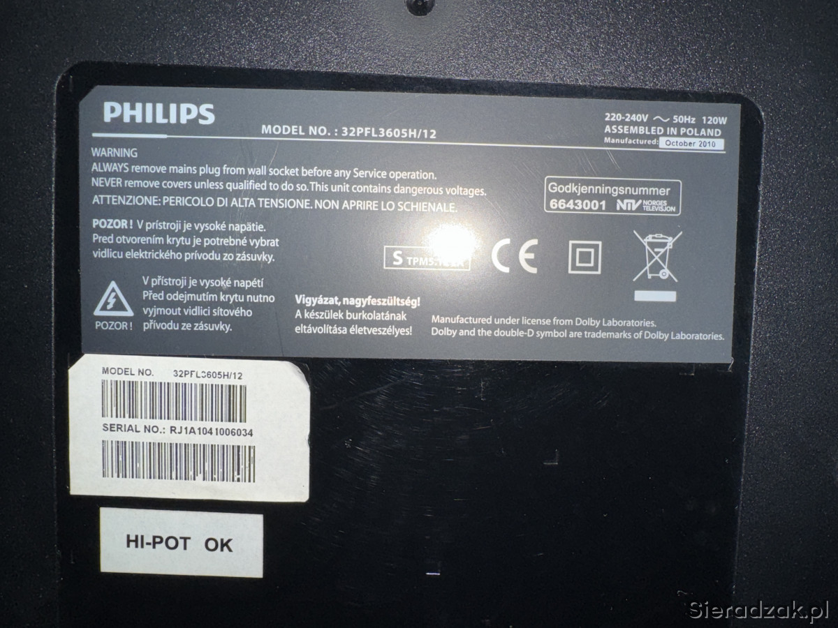 Sprzedam telewizor Philips 32PFL3605H/12 z pilotem. Sprzęt działa, ekran bez uszkodzeń.