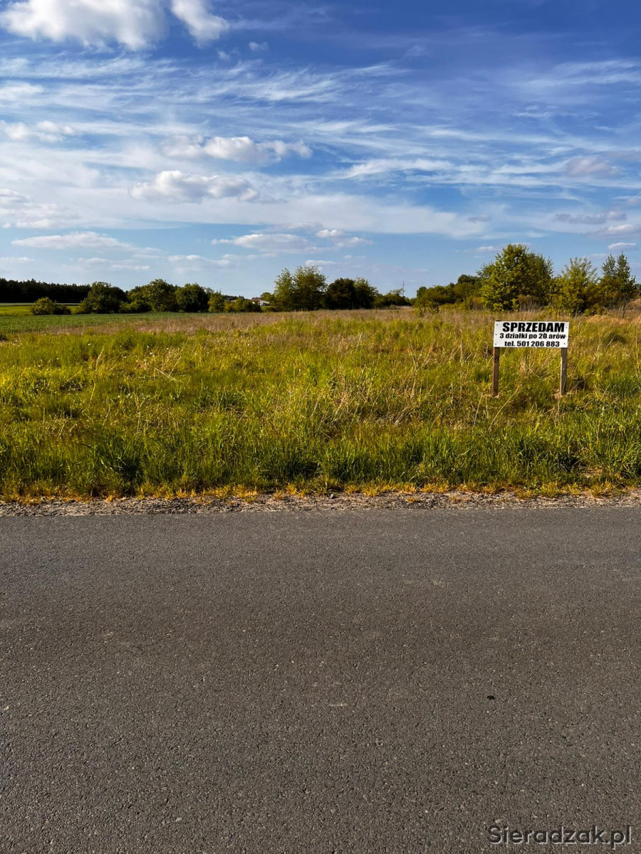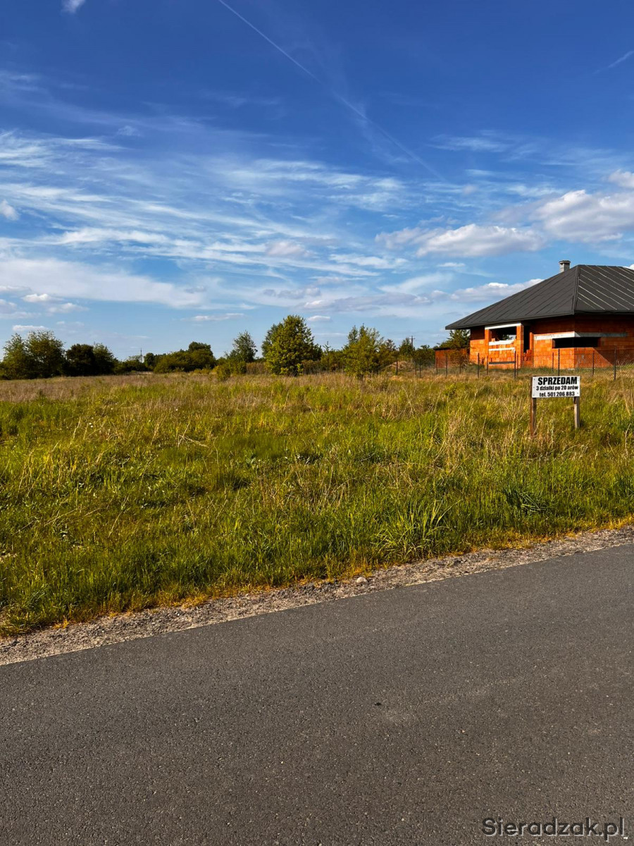 Sprzedam 3 dzialki budowlane po 20 arów każda. Prąd, woda w ulicy, dojazd do dzialki drogą asfaltową. Bardzo spokojna i cicha ulica.