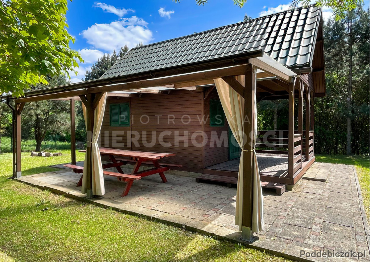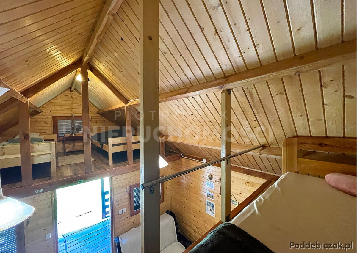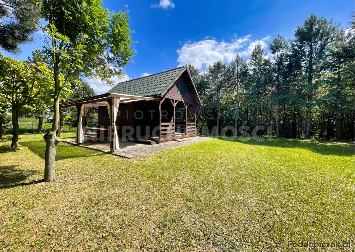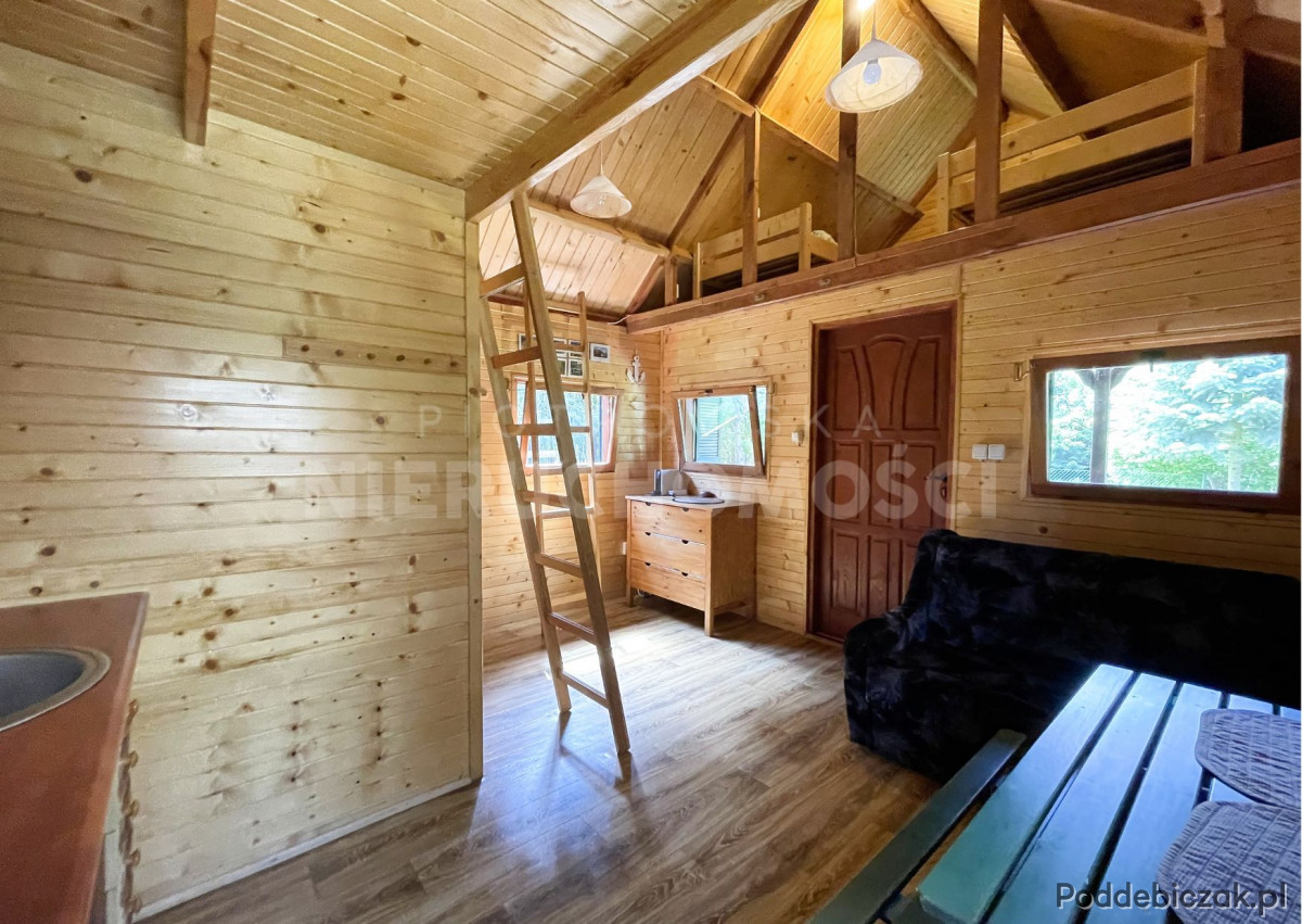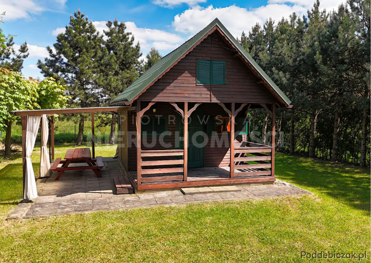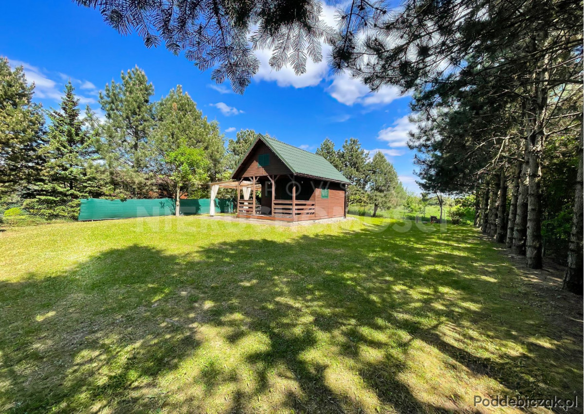 Na działce domek drewniany 4 m x 4 m w skład którego wchodzą: pokój dzienny z aneksem kuchennym, dwie sypialnie na antresoli, łazienka z WC wyposażona w kabinę prysznicową.
