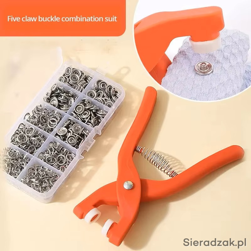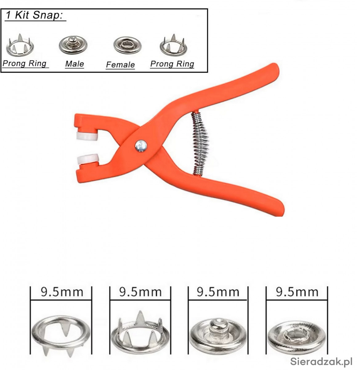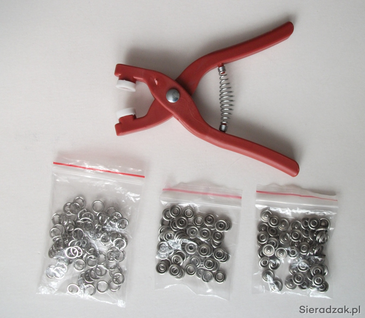 Sprzedam komplet do samodzielnego montażu zatrzasków. W gospodarstwie domowym znajdzie szerokie zastosowanie do ubrań, szczególnie dziecinnych, poszwy na kołdry i podszki, płaszcze przeciwdeszczowe, zasłony, ubranka dla zwierząt itp.