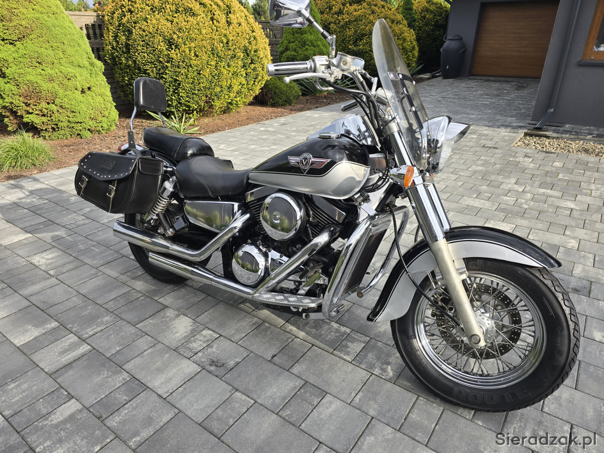 Do sprzedania Kawasaki VN1500 Vulcan z 1998r. (wersja europejska). Motocykl świeżo sprowadzony z Niemiec bezpośrednio od właściciela z domu. Wizualnie prezentuje się bardzo ładnie. Posiada jedynie normalne ślady użytkowania. Chromy w bardzo ładnym stanie. Mechanicznie wszystko w pełni sprawne. Silnik, skrzynia, sprzęgło i hamulce działają jak należy. Opony w bardzo ładnym stanie. Oryginalny przebieg 33856km udokumentowany do samego końca. Motocykl świeżo po czyszczeniu gaźnika w myjce ultradźwiękowej. Założony został nowy zaworek iglicowy i nowa uszczelka komory pływakowej. Dodatkowo motocykl ma założony nowy filtr powietrza oraz nowe klocki hamulcowe przód i tył. Kawasaki wyposażone w wydech Vance&Hines wraz z DBkillerami, gmole, szybę, obrotomierz Koso, sakwy boczne, daszek lampy itp. Do motocykla jest pełna dokumentacja (mały i duży Brief, instrukcje, serwis manual, wydruki z przeglądó TUV i komplet kluczyków). Kupujący zwlniony z opłaty skarbowej. Zapraszam na oględziny i jazdę próbną. Możliwość dowozu motocykla do klienta. Na więcej pytań chętnie odpowiem pod numerem telefonu 667-702-600. Możliwość zdalnego zakupu motocykla.