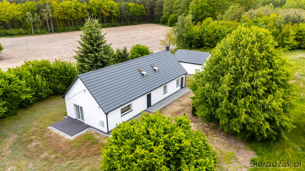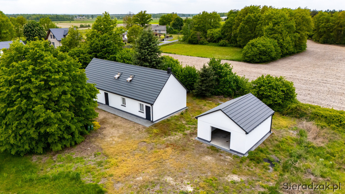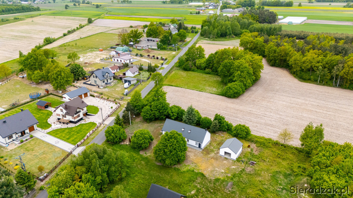 Lokalizacja domu jest niezwykle dogodna i przyciąga wielu jej miłośników. W niecałe 10 minut samochodem dotrzemy do Błaszek, gdzie znajdują się liczne punkty handlowo - usługowe. Dojazd w kierunku większych miast tj. Sieradz oraz Kalisz trwa 30 minut.