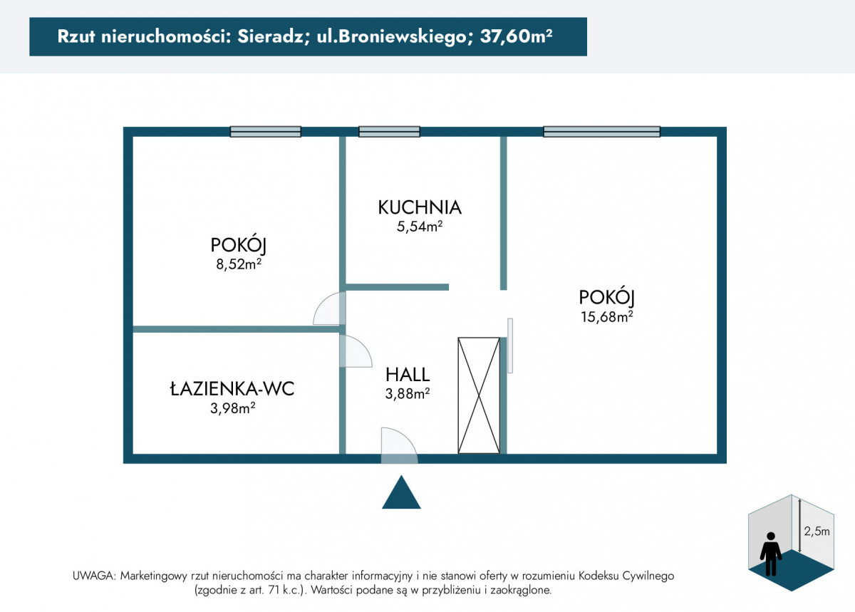Oferujemy na sprzedaż przytulne i funkcjonalne mieszkanie o powierzchni 37,60 m² zlokalizowane na parterze czteropiętrowego bloku przy ul. Broniewskiego w Sieradzu. Do lokalu przynależy również piwnica, co zwiększa przestrzeń do przechowywania.