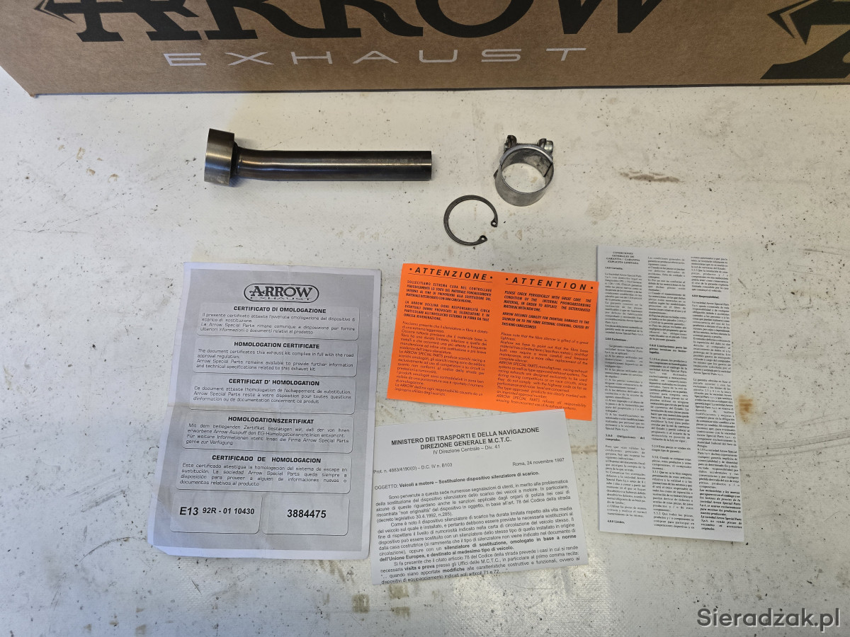 Do sprzedania tłumik Arrow do Aprilii SX RX125 od 2018r. Pasuje również do Malaguti XSM125, Mondial SMX 125, Zundapp ZMX ZXS 125 itp. Stan jak nowy. Przejechał kilkaset kilometrów. Dodatkowo posiada oryginalne pudełko, DBkiller i certyfikat. Cena nowego około 1500zł. Więcej informcji pod numerem telefonu 667-702-600. Na sprzedaż posiadam jeszcze wydech Leovince za 570zł również pasujący do tego modelu.