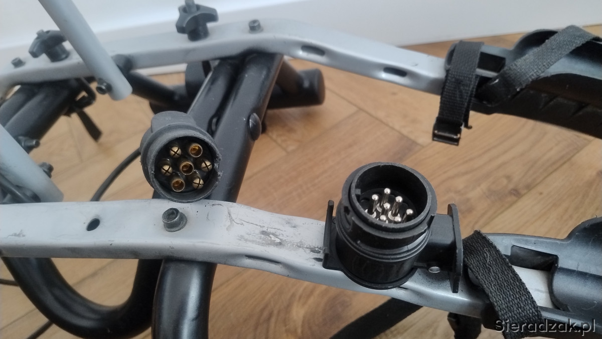 Sprzedam bagażnik rowerowy Thule na 2 rowery, montowany na hak holowniczy. Wtyczka 7 pin ( przejściówka 7/13 gratis)