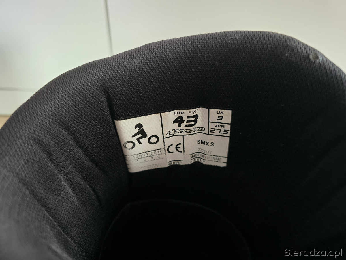 Do sprzedania buty motocyklowe Alpinestars Smx S w rozmiarze 43 (długość wkładki 27,5cm). Buty posiadają normalne ślady użytkowania. Tel. 667-702-600