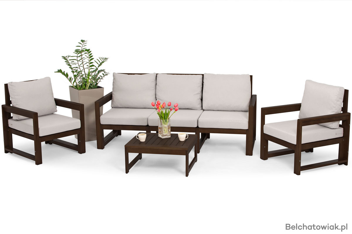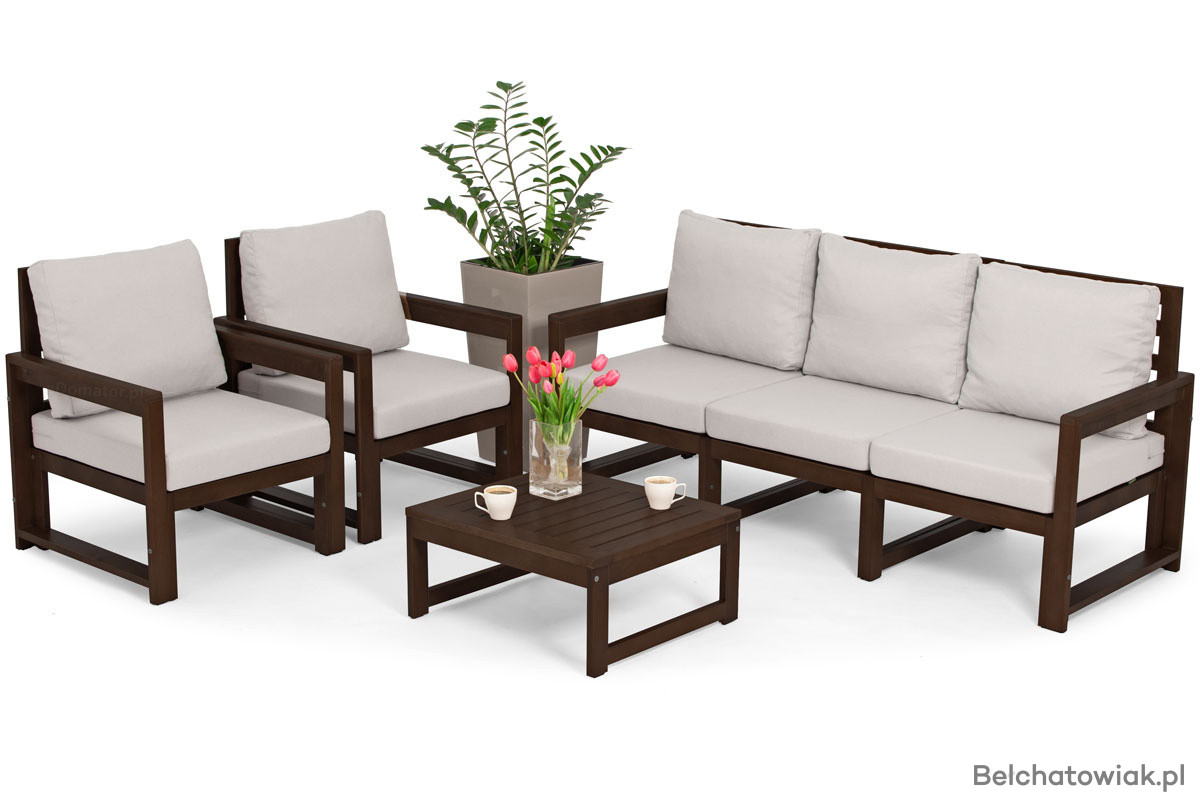 Zestaw wypoczynkowy MALTA 5-osobowy to elegancka i funkcjonalna propozycja do ogrodów, tarasów i przestronnych balkonów. Dzięki połączeniu ciemno brązowego drewna z szarymi poduszkami, zestaw wprowadza do każdej przestrzeni nowoczesny i ponadczasowy styl. Zapewnia wygodę i przestronność, tworząc idealne miejsce do relaksu w gronie rodziny lub przyjaciół.