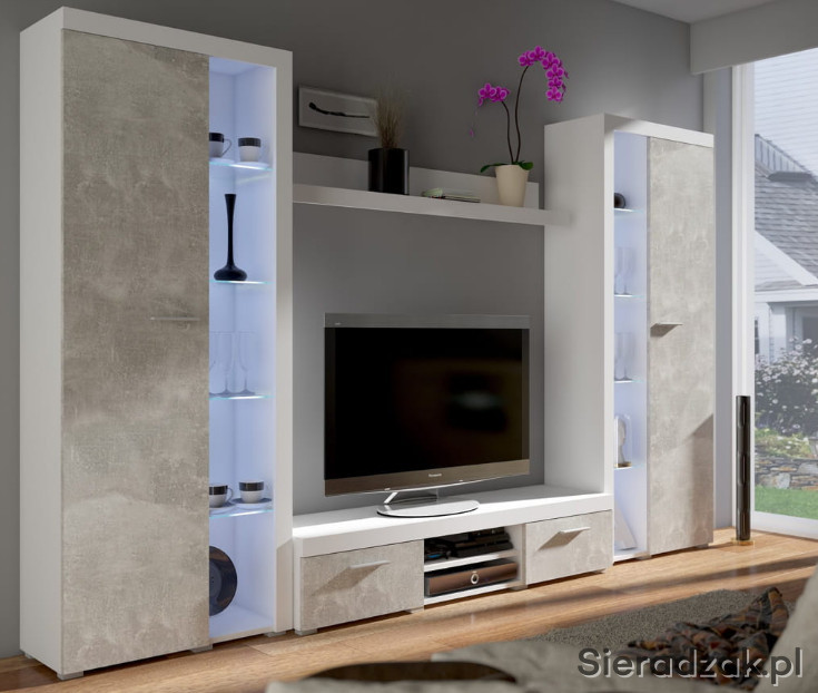 Meblościanka Rumba XL beton jasny/biały fabryka Stolarz-Lempert.