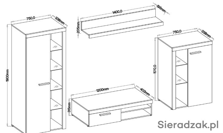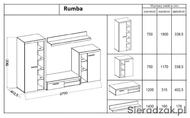 Meblościanka Rumba dąb sonoma fabryka Stolarz-Lempert.