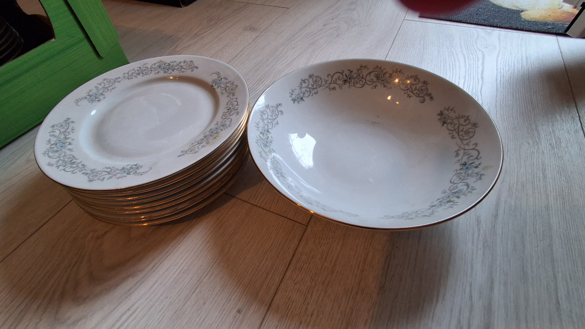 Sprzedam 10 talerzy deserowych zdobionych PRL. Stna dobry