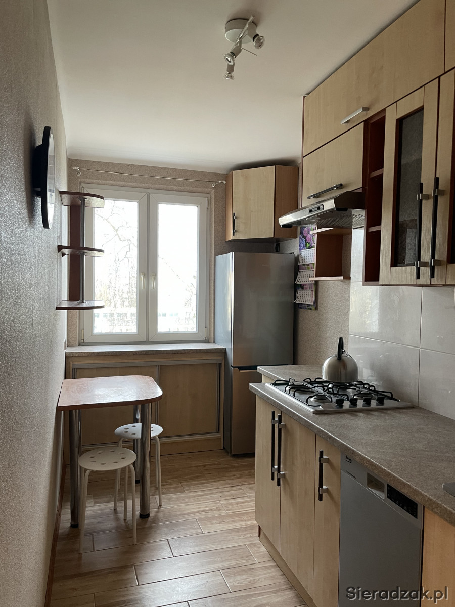 Do sprzedania 2-pokojowe mieszkanie o powierzchni 46,8 m2 w Sieradzu. Świetna lokalizacja - ul. Piłsudskiego 11. W pobliżu urzędy, szkoła, sklepy, ośrodek zdrowia. Mieszkanie położone na 3 piętrze, bardzo ciepłe, wyremontowane. Kuchnia w pełni wyposażona; kuchenka gazowa, piekarnik, zmywarka, mikrofala. Nowe wyposażenie - talerze, garnki, sztućce, szklanki. W salonie i sypialni nowe meble, dwa telewizory, podłączona TV naziemna DVBT. Lokal gotowy do zamieszkania bez wkładu finansowego, przynależy do niego komórka lokatorska w piwnicy.