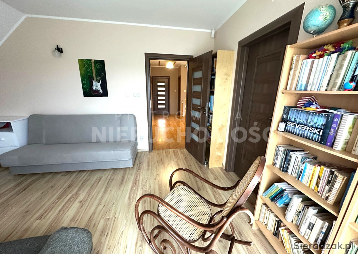 • Piętro to prywatna strefa domowników – 3 komfortowe sypialnie (w tym główna z garderobą), duża łazienka i osobna pralnia.